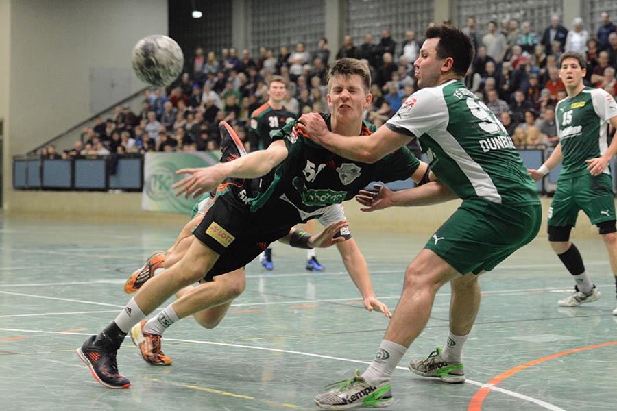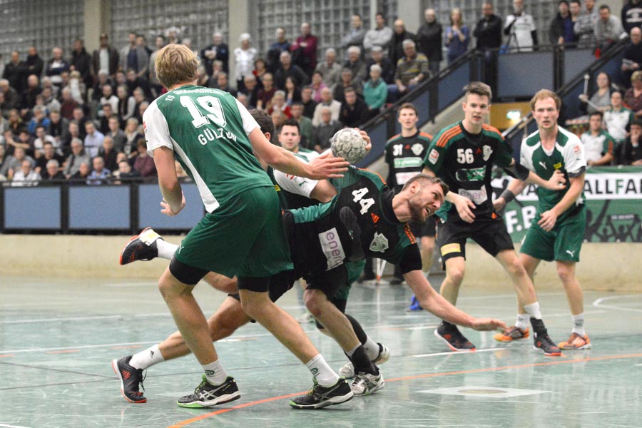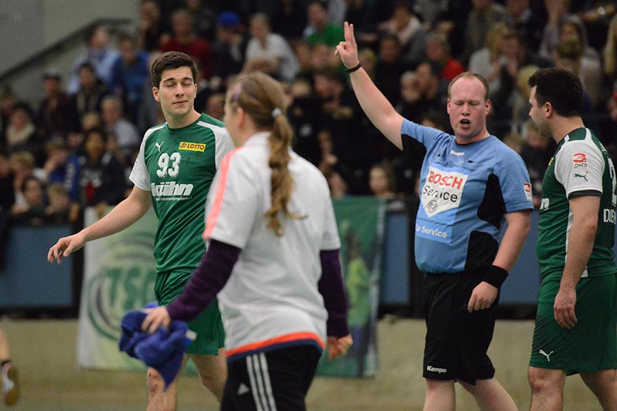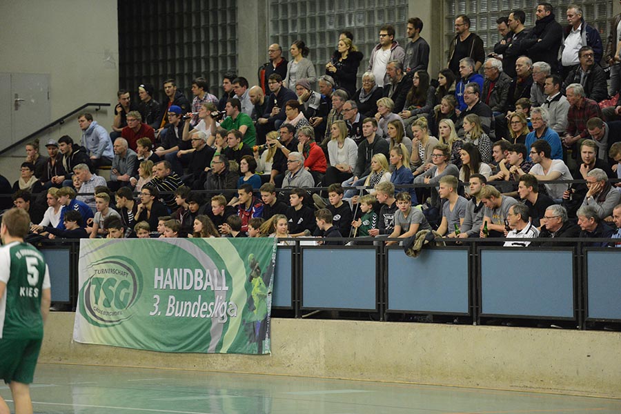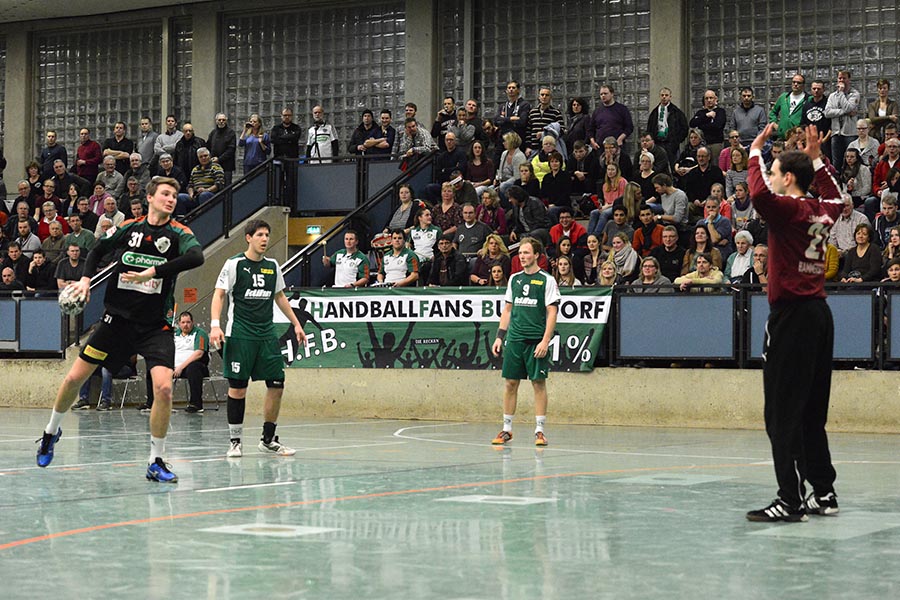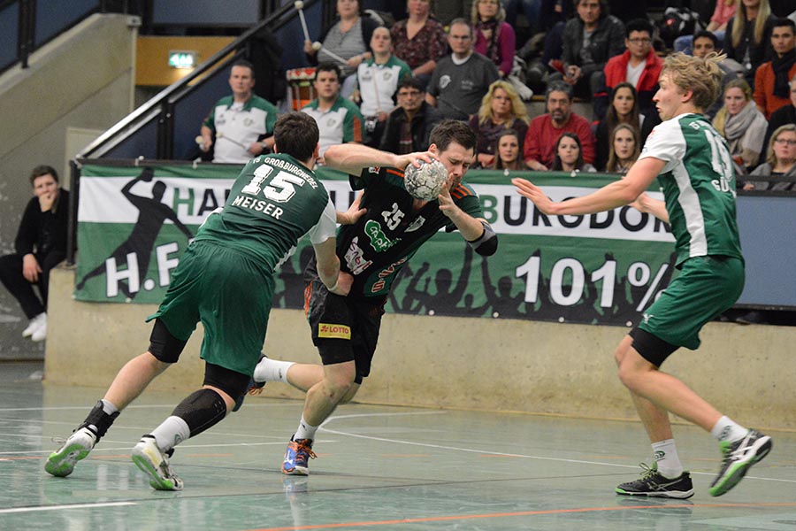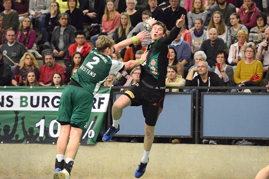 Dabei war es bis zur Pause noch ein sehenswertes Spiel beider Mannschaften, die sich auf Augenhöhe begegneten und vor ausverkaufter Kulisse zeigten, dass sie nicht ohne Grund Tabellennachbarn in der 3. Liga Nord sind. Kein Team konnte sich entscheidend absetzen, mal waren die Großburgwedeler vorne, mal die gastgebenden Burgdorfer. So ging es mit der leichten 15:14-Führung für die TSV in die Pause. Nach dem Wechsel agierten die TSVer spritziger und agiler, vor allem Maurice Dräger, der zusammen mit seinem Zwillingsbruder Yannick heute seinen 22. Geburtstag feierte, setzte mit seinen Toren zu Beginn der 2. Halbzeit Akzente. Schnell stand es 17:14 für die Hausherren, nach 41 Minuten leuchtete das 20:17 auf der Anzeigetafel. Bätjer versuchte das Blatt zu wenden, indem er immer wieder für den Torwart einen weiteren Feldspieler brachte, doch es sollte nicht reichen. Auch weil TSV-Schlussmann Jendrik Meyer mehrere TSG-Würfe vereitelte und selbst, weil das TSG-Tor leer stand, zwei Tore erzielte. Die TSver zogen auf 23:18 davon (47.). Die Göäste gaben jedoch nicht auf, nuten in der Folgezeit die sich ihnen bietenden Chancen besser aus und kamen auf 23:20 heran. Doch die 50. Minute sollte der Wendepunkt der Partie werden: Drei 2-Minutenstrafen innerhalb von 16 Sekunden machten es für die TSG unmöglich, das Ruder noch umzureißen. Sören Kress, Christian Hoff und Steffen Dunekacke, letzteren gelang sogar ein Tor un dieser Konstellation, standen in der Offensive alleine auf weiter Flur gegen 6 TSV-Feldspieler, die jeden Angriff innerhalb von Sekunden zum Torwurf nutzten. In der 54. Minute waren die TSVer wieder 5 Tore vorne, so dass sie bis zum Ende nur noch die Zeit abspielen brauchten, um den 29:27-Sieg feiern zu können.