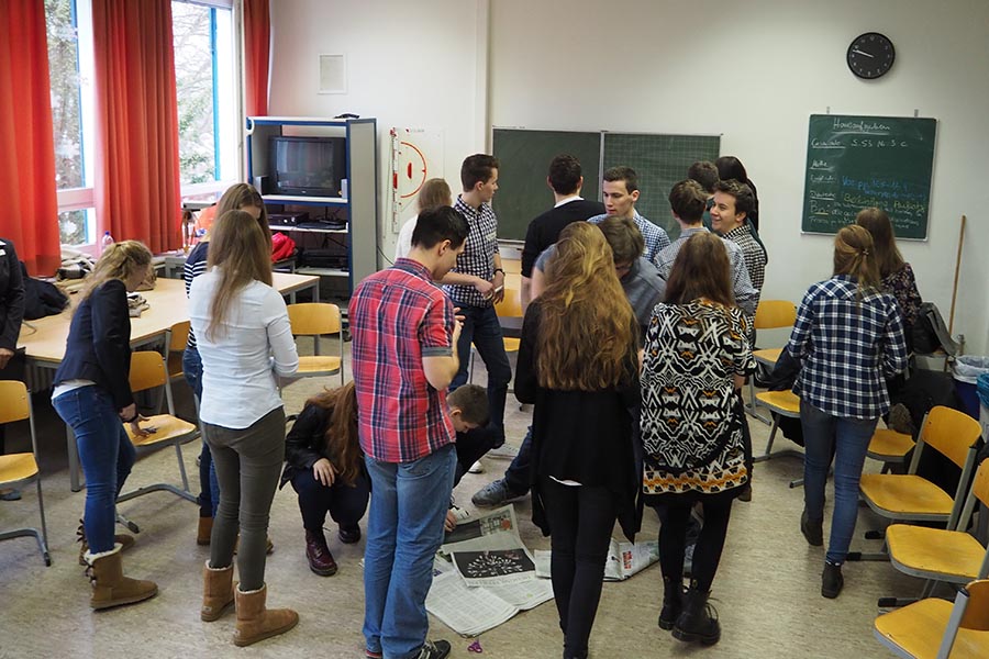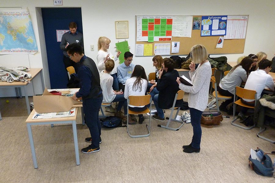 Dank vieler erfahrener externer Beobachter aus der Elternschaft, über Firmenkontakte und aus der Lehrerschaft konnten sich die Lehrkräfte ganz auf die Bewertung konzentrieren, während die Beobachter die Teilnehmerinnen und Teilnehmer hinsichtlich der "Stellenvergabe" analysierten. Die Schülerinnen und Schüler absolvierten verschiedene Assessment Center-typische Aufgaben einzeln, partnerweise oder in Gruppen, wobei sie immer wieder von Unerwartetem überrascht wurden.