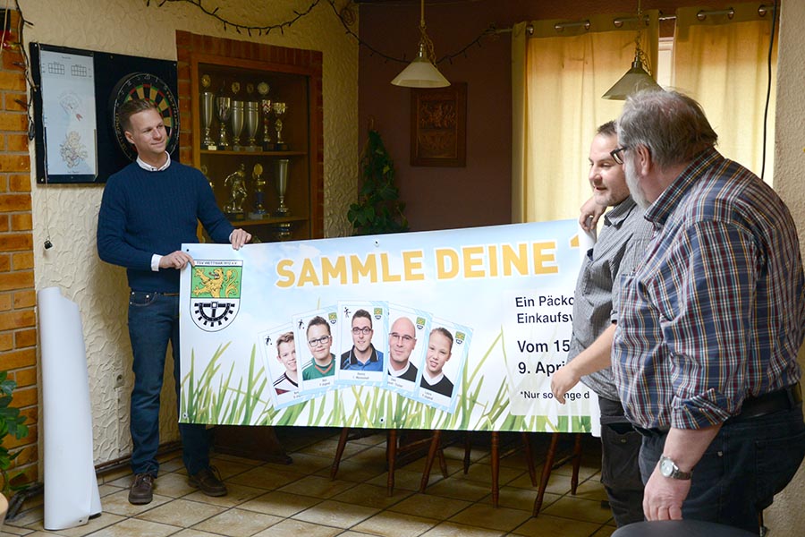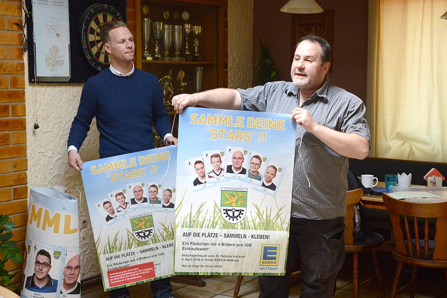 Es war der offizielle Abschluss und zeitgleich einer der Höhepunkte der Sammelaktion des TSV Wettmar: Seit 13. Februar hatten die Mitglieder, Freunde und Fans des TSV Wettmar die Möglichkeit, die Aufkleber für die Sammelalben im Edeka-Markt in Wettmar für jeweils 10 Euro Einkauf zu erhalten. So wusste Marktleiter Kevin Schneevoigt heute zu berichten, dass es an der Kasse nur noch ein Thema gab: "Sticker". "Da haben wir glatt die Treuepunkte vergessen", wusste aus den Reihen der Sammler eine Teilnehmerin zu berichten. Auch der TSV-Vorsitzende Peter Huß freute sich über die große Resonanz im Ort, denn von den den 65.000 Sammelpäckchen, mit insgesamt 225.000 Aufklebern, blieben am Ende nur wenige übrig. "So ein Sammelalbum ist für uns kleinen TSV Wettmar schon was besonderes", unterstrich er. Zum Dank überreichte er Keven Schneevoigt eine Komposition verschiedene Bilder aus den vergangenen Wochen, auf denen zu sehen war, dass selbst in Australien das TSV-Sammelfieber ausgebrochen war. Beide sind sich einig: Das war eine tolle Aktion, die allen beteiligten viel Spaß gemacht hat. Eine Wiederholung schloss hierbei Kevon Schneevoigt nicht aus, was zu großen Applaus unter den Anwesenden führte.