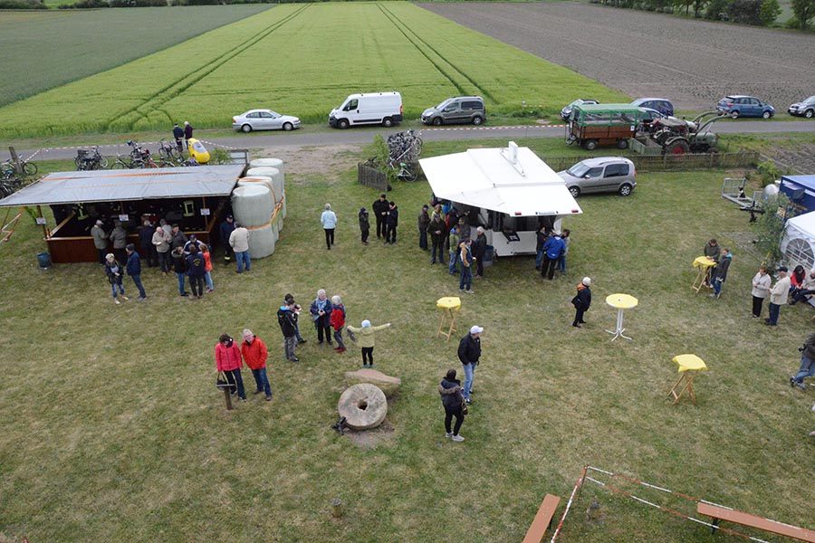 Trotz des kalten Wetters fanden sich viele Besucher auf dem Mühlenberg ein, die auch geduldig bei kaltem Wetter auf eine der Führungen warteten. Für das leibliche Wohl sorgte der Heimatverein mit Kaffee und wohlschmeckendem selbstgebackenem Kuchen und die drei Ortsfeuerwehren hielten Herzhaftes vom Grill bereit.