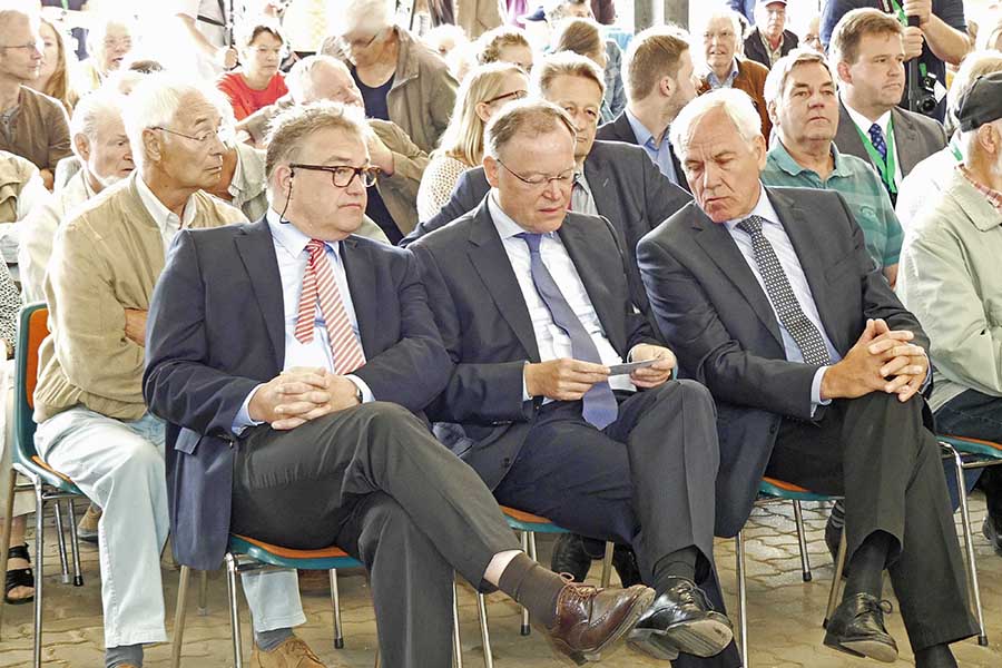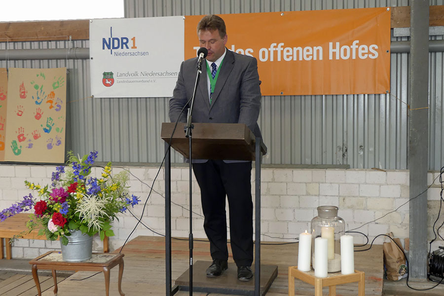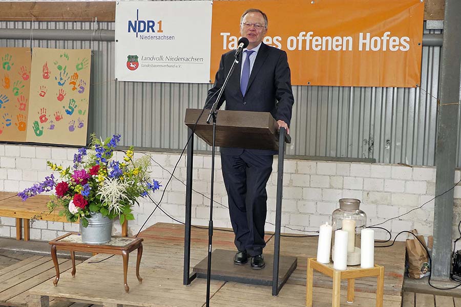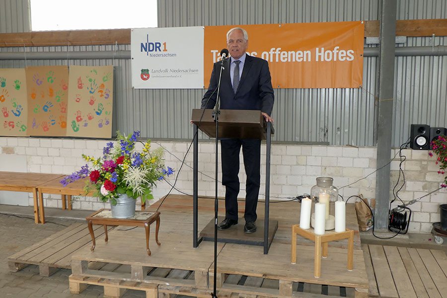 Stephan Weil ergänzte in seinem Grußwort in der vollbesetzten Fahrzeugremise des Knopf’schen Hofes "in unseren ländlichen Räumen sind die 40.000 landwirtschaftlichen Betriebe Ausgangspunkt für viele wirtschaftliche Aktivitäten. Landwirte können viel und leisten viel. Gleichzeitig spielt die Landwirtschaft eine wichtige Rolle bei der Pflege unserer Kulturlandschaft. Kurzum: Engagement und Leistungsfähigkeit der Landwirtschaft sind unverzichtbar für unsere ländlichen Regionen."