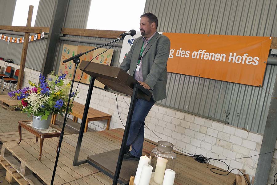 Eckhart Pohl, Wellenchef von NDR 1 Niedersachsen forderte in seiner Ansprache in Schwüblingsen mehr Gemeinsamkeit und gegenseitiges Verständnis "Schauen Sie sich die Ideen der Landwirte an", bat Eckhart Pohl, "richten Sie mit ihnen den Blick auf ihre Zukunftsideen, hören Sie aber auch ihre Sorgen an."