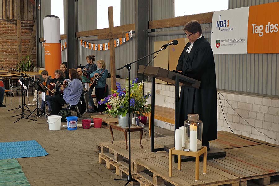 In Schwüblingsen, in diesem Jahr Ausrichtungsort der Eröffnungsfeier, begann der Tag mit einem OpenAir-Gottesdienst der Kirchengemeinde Dollbergen-Schwüblingsen mit Pastor Tibor Anca, dem Kindergottesdienst-Team und der Gitarrengruppe "E-Piano".