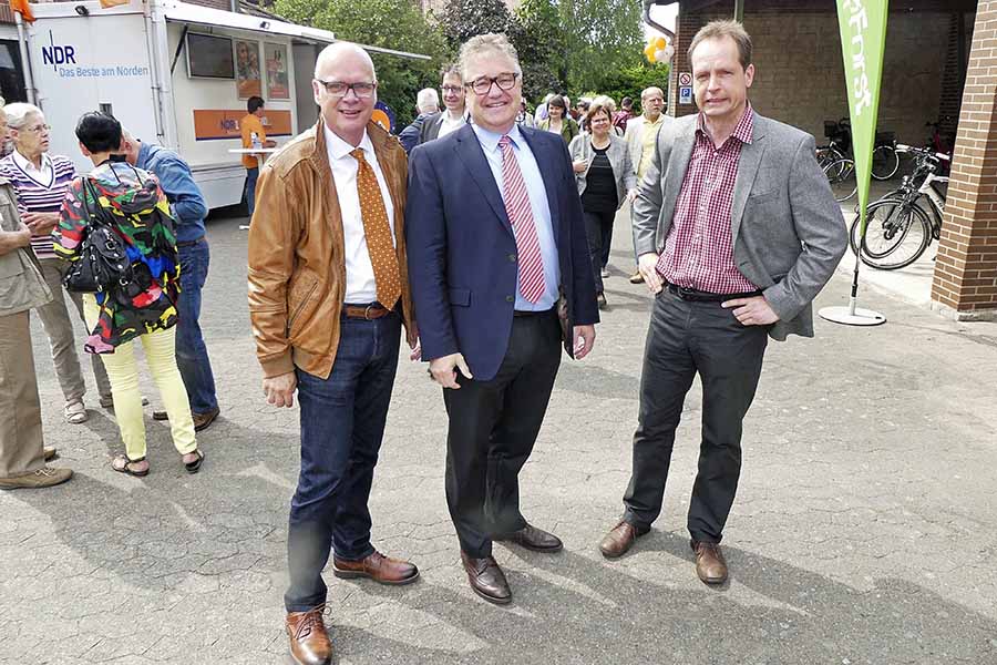 Holger Hennies, neben Volker Hahn einer der geschäftsführenden Vorstände des Landvolkkreisverbandes Hannover e.V. und Landwirt auf einem der fünf beteiligten Höfe in Schwüblingsen, begrüßte zur Eröffnungsveranstaltung: Die vier weiteren teilnehmenden Schwüblingser Landwirte Dirk Buchholz, Hermann Hasberg, Jürgen Kopf und Carsten Fricke, Ortsbürgermeister von Schwüblingsen Eike Dralle, Uetzes Bürgermeister Werner Backeberg und Regionspräsident Hauke Jagau, den Präsident des Landvolk Niedersachsen Landesbauernverband Werner Hilse, Ministerpräsident Stephan Weil und Landwirtschaftsminister Christian Meyer, sowie Dr. Maria Franziska Flachsbarth, Mitglied des Deutschen Bundestages und Parlamentarische Staatssekretärin im Bundesministerium für Ernährung und Landwirtschaft, sowie Eckhart Pohl, Wellenchef von NDR 1 Niedersachsen.