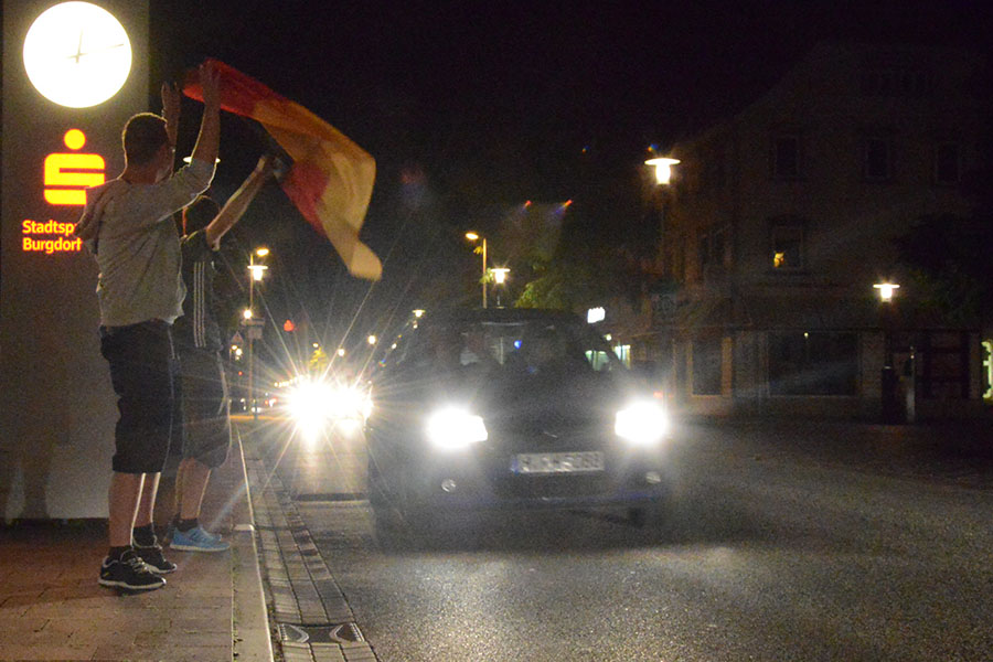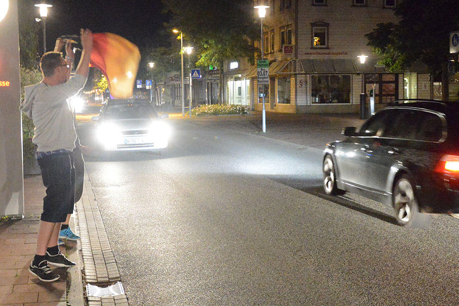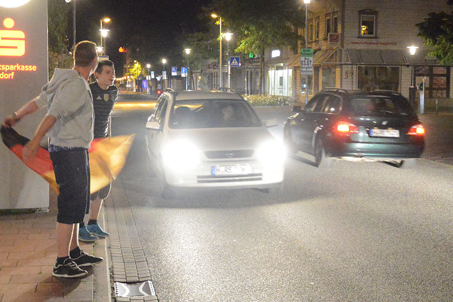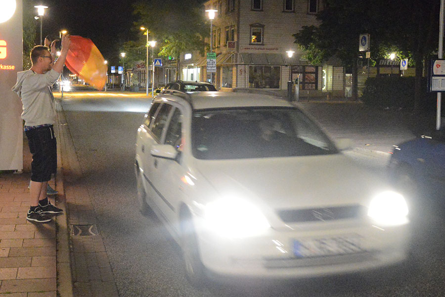 Es war ein spannendes Spiel im Viertelfinale der Fußball-Europameisterschaft zwischen Deutschland und Italien, das auch im Altkreis von vielen verfolgt wurde. Ob zu Hause, bei Freunden, beim Schützenfest in Obershagen oder beim Public Viewing: Das Viertelfinalspiel war heute DAS Ereignis, auch im Altkreis Burgdorf. So wurde von der Wedemark über Isernhagen und Burgwedel über Burgdorf, Uetze und Lehrte bis nach Sehnde beim Spiel zwischen Deutschland und Italien mitgefiebert. Nach dem erlösenden Siegtreffer durch Jonas Hector war der Jubel groß. Der Einzug ins Halbfinale wurde dabei nicht nur an besagten Orten gefeiert, sondern auch mt Autokorsos durch die Städte und Gemeinden. So waren beispielsweise Florian, Maurice und Kai in Burgdorf auf der Markstraße in Burgdorf unterwegs und schwenkten die Deutschlandfahne während die Autos hupend vorbei fuhren. Ein Bild, dass sich hoffentlich nach dem Halbfinale wiederholen wird.