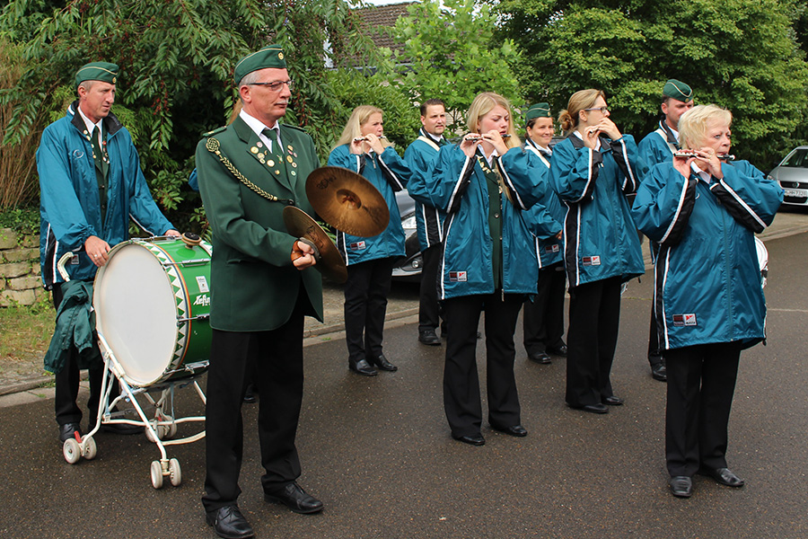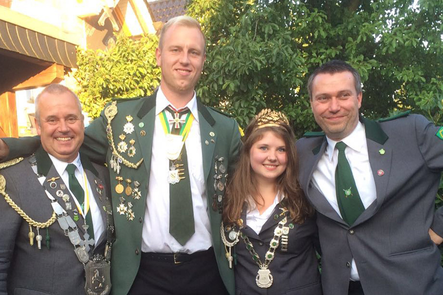 Begleitet von der Musik des Spielmannszug des SV Kleinburgwedel wurde die Scheibe angebracht und anschließend zum Ehrentanz gebeten. Er war zudem nicht die einzige Majestät an diesem Tage: Die Wettmarer hatten ihre Königin Natascha Krüger mitgebracht. Der Kreiskönig Sascha Hoffmann (SV Kleinburgwedel) war ebenso dabei wie der Landeskönig Andreas Genske (SV "Gut Ziel" Wettmar). Zu Bratwurst vom Grill und Salaten wurde dann zu Ehren des Wettmarer Königs gefeiert. "Das war wie ein Mini-Schützenfest mit freundschaftlichem Miteinander und viel Spaß und Humor", fanden die Teilnehmer.