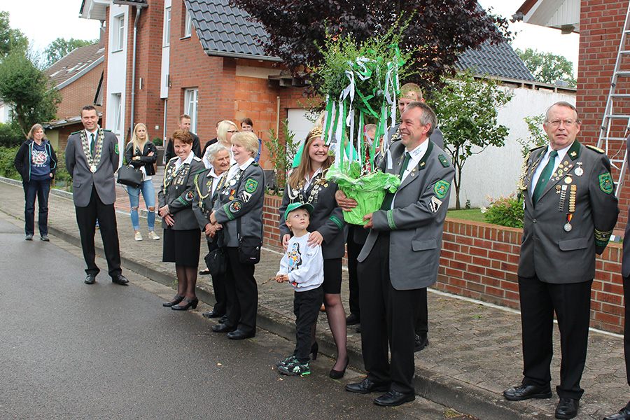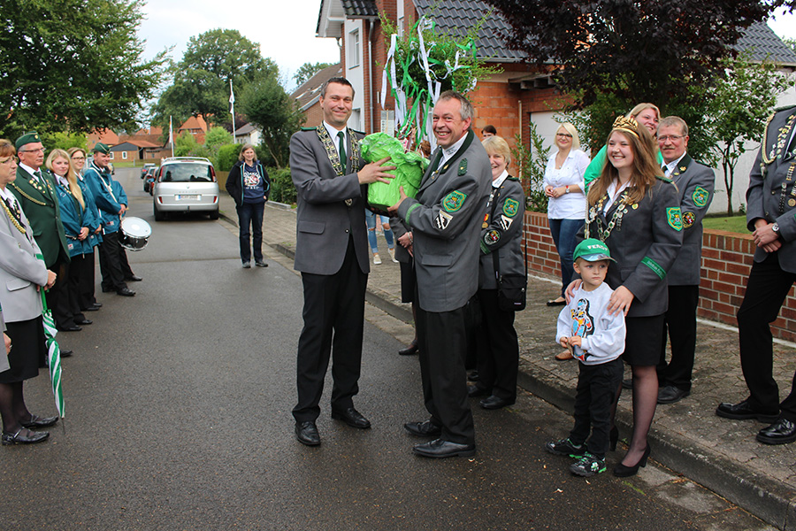 Ende Mai war das Volks- und Schützenfest in Wettmar, jetzt wurde auch dem letzten König seine Scheibe überreicht, denn: Der Wettmarer König, Sascha Glombik, wohnt in Kleinburgwedel. So wurde beim Schützenfest die Scheibe zunächst symbolisch am Schützenhaus angebracht und der neue König gefeiert. Am gestrigen Sonnabend wurde dann die Scheibe, die ein Adler ziert, offiziell überreicht.