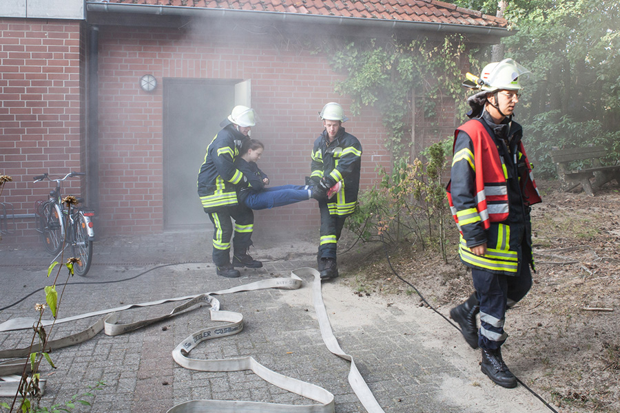 Aus dem verrauchten Gebäudeinneren konnten die Einsatzkräfte 6 Kinder retten, die durch Mitglieder der Jugendfeuerwehr Engensen gestellt wurden. Diese wurden anschließend betreut und dem imaginär dem Rettungsdienst übergeben.