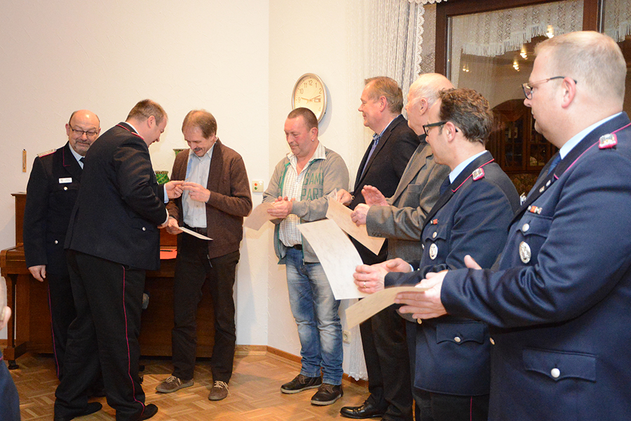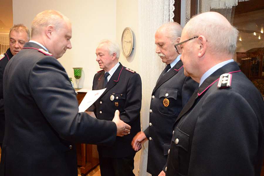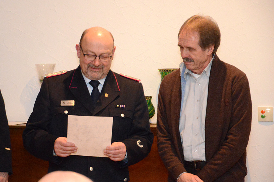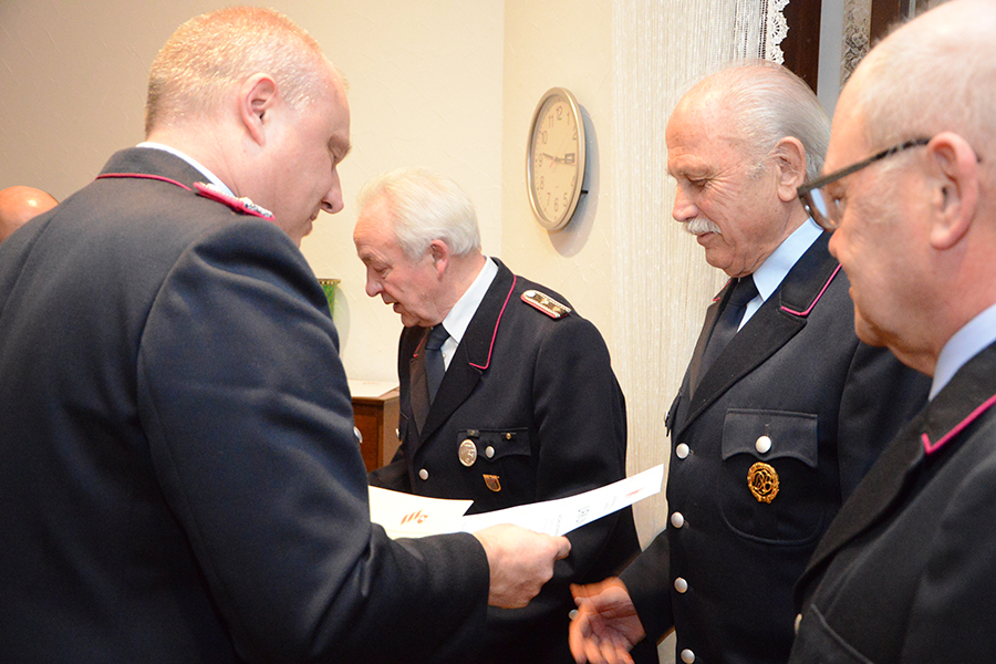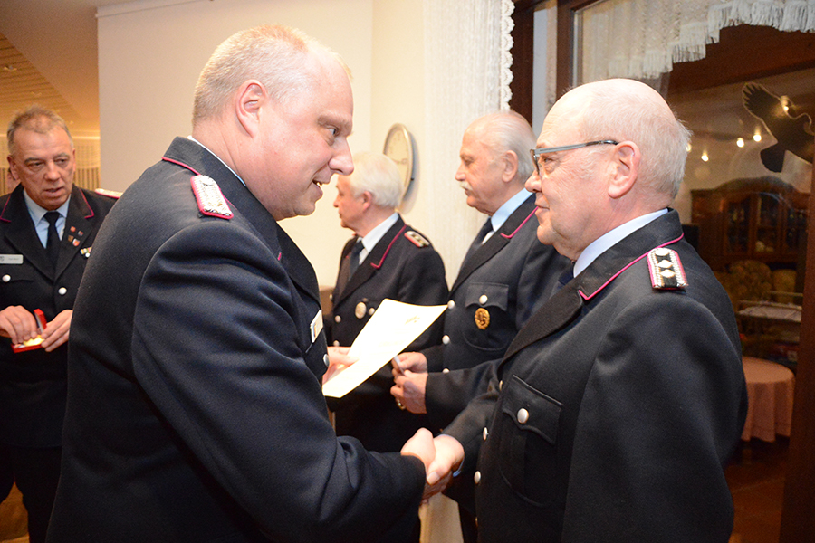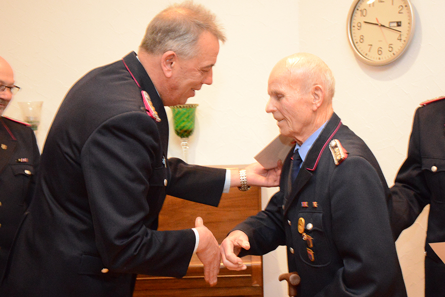 Eine nicht alltägliche Ehrung wurde während der Jahreshauptversammlung durch Stadtbrandmeister Ingo Motl vorgenommen: Er ehrte Friedrich Bauche für seine 70-jährige Mitgliedschaft in der Feuerwehr mit der Ehrenzeichen und Urkunde das Landesfeuerwehrverbandes.