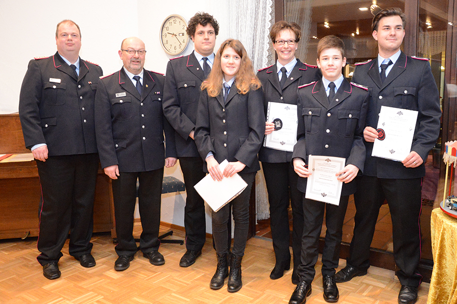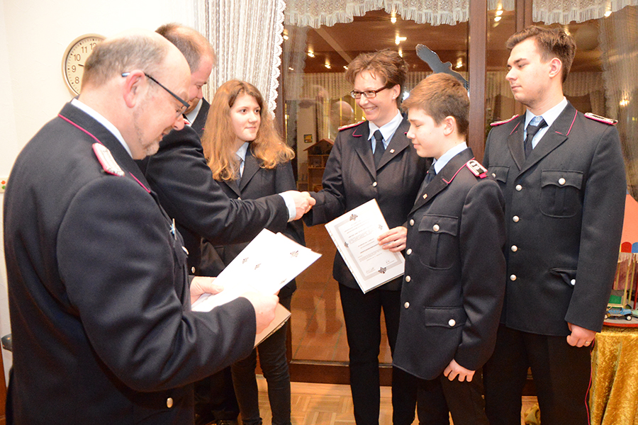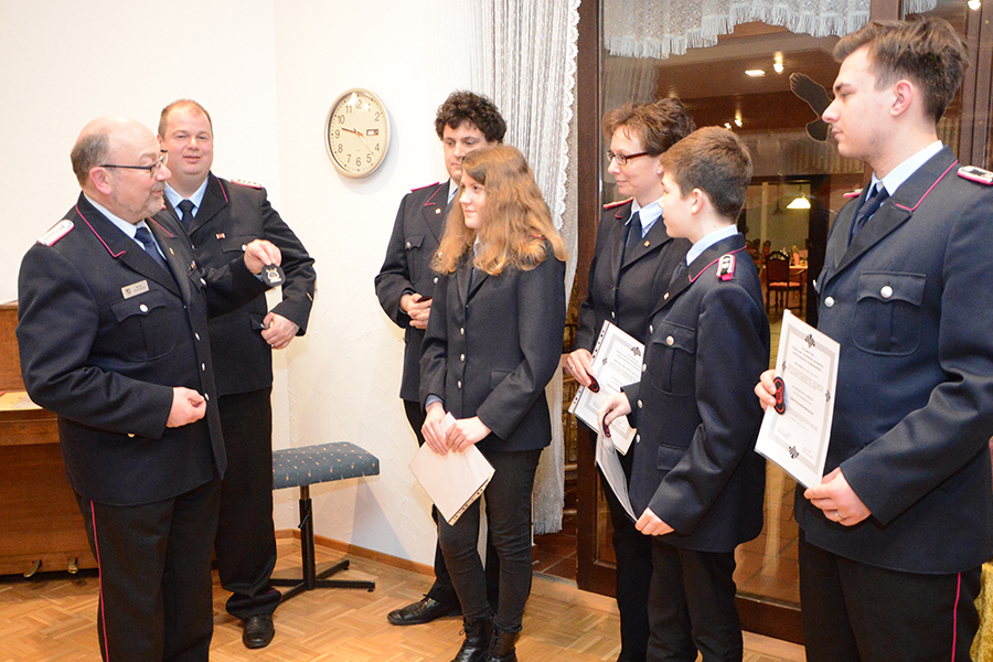 Eine große Stellung nimmt bei der Kleinburgwedeler Ortswehr auch der Feuerwehrmusikzug ein, der aus Mitgliedern aus Engensen verstärkt wird. 17 Musiker gehören dem Musikzug an, der – wie die aktiven Kameraden – auch mal spontan einspringt und musikalisch zu Hilfe eilt. Am Freitag sorgte er für den musikalischen Rahmen der Jahreshauptversammlung. Daher war es Ortsbrandmeister Wlater Sonnefeld auch eine besondere Ehre, fünf Musiker einen neuen Dienstgrad zu verleihen. Nach erfolgreiche Teilnahme am D1-Lehrgang in Altgandershein wurden Kimberly Dauber, Moritz Saupe, Till Rittstieg, Jonas Kurtze und Anke Wöhler-Saupe zu Oberfeuerwehrmusikern ernannt.