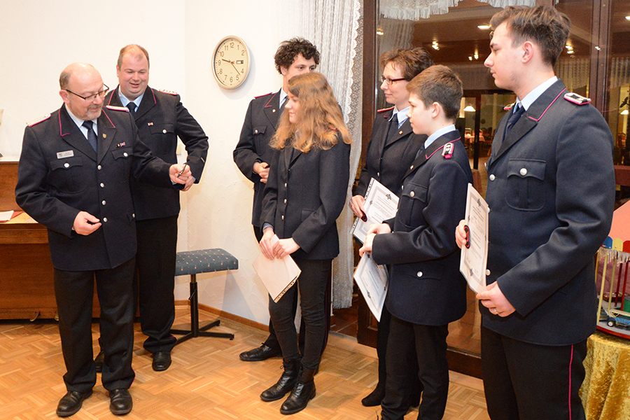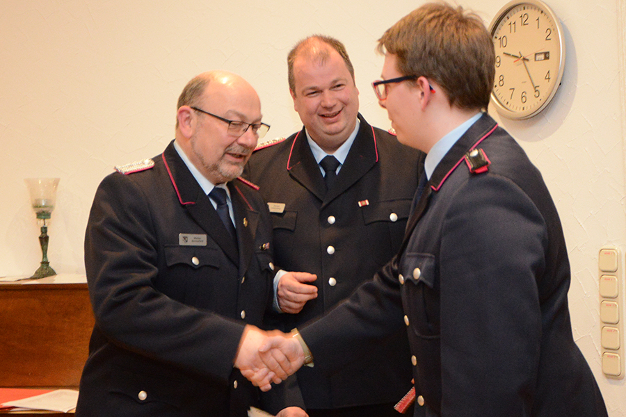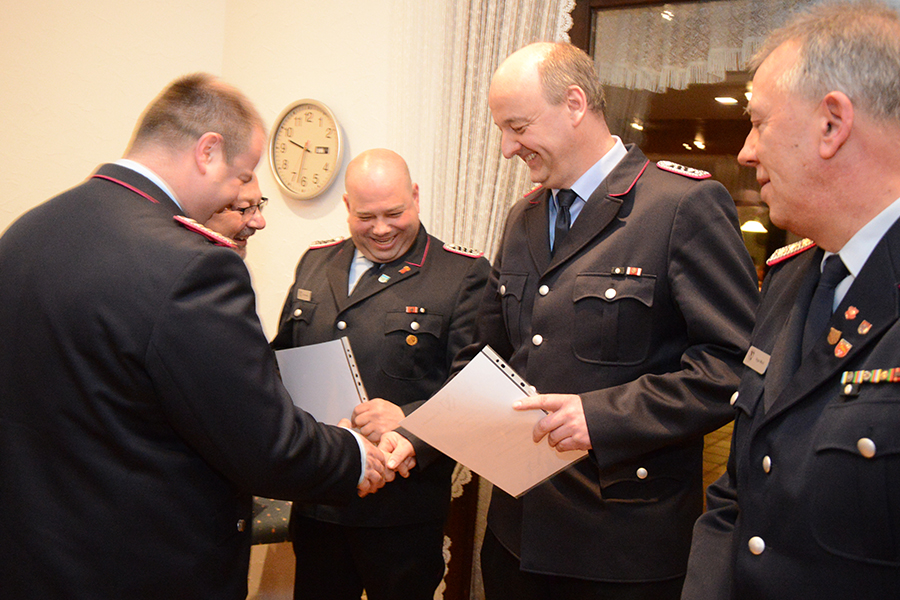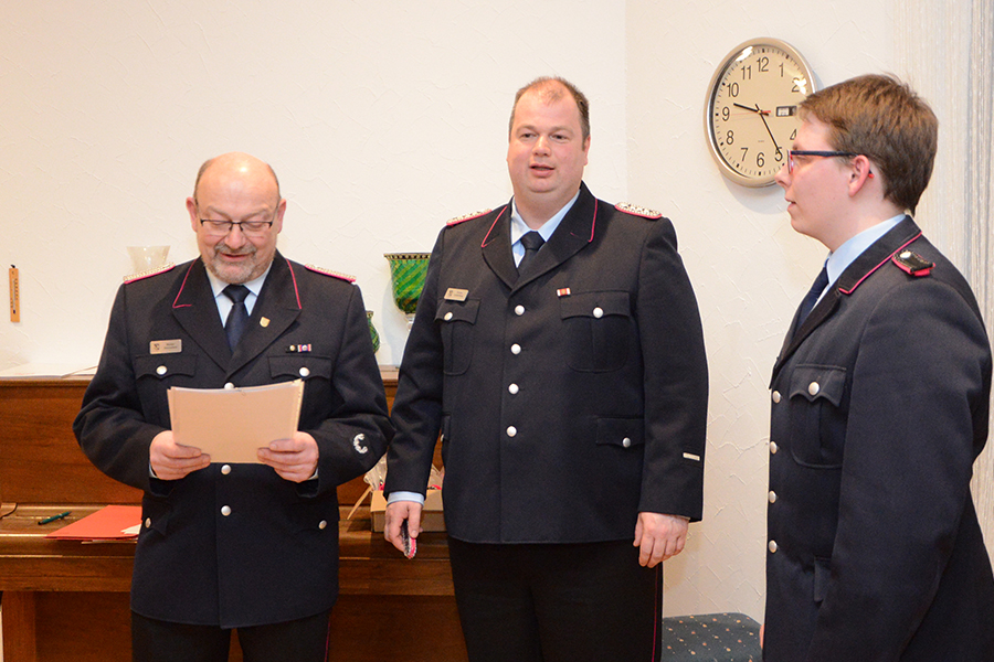 Durch den Ortsbrandmeister wurden Rene Bode (Feuerwehrmann), Michael Zierau (Oberfeuerwehrmann), Volker Hennigs (Hauptfeuerwehrmann), Martin Böttcher (1. Hauptfeuerwehrmann) neue Dienstgrade verliehen. Stadtbrandmeister Ingo Motl konnte zudem noch zwei besondere Ernennungen vollziehen: Zum Oberlöschmeister ernannte er Jens Saupe, den Dienstgrad des Hauptlöschmeisters verlieh er Edgar Kolze.