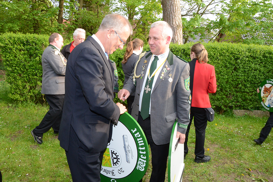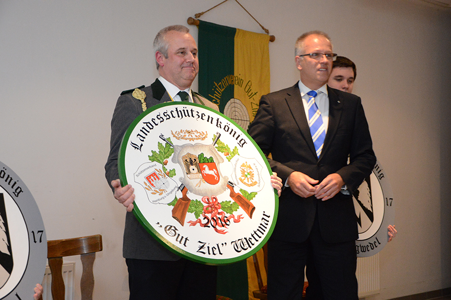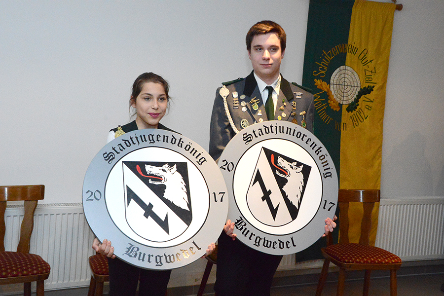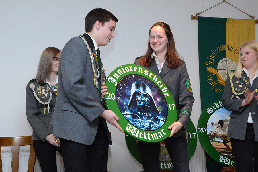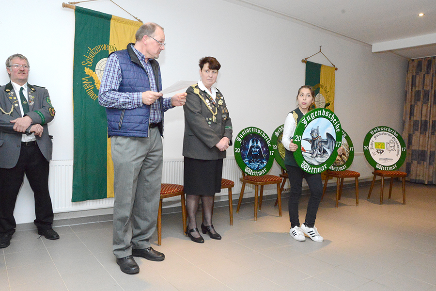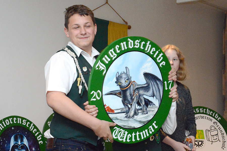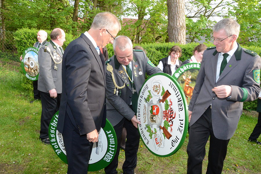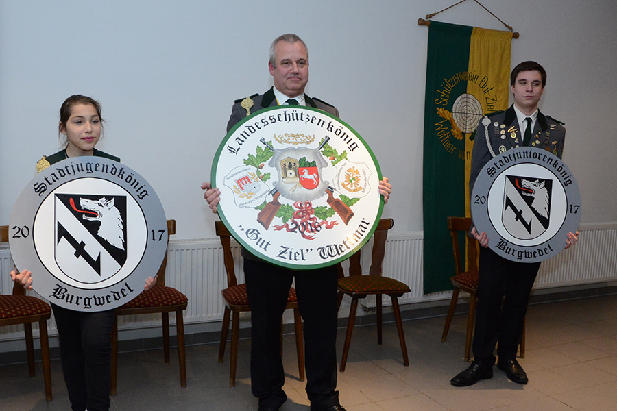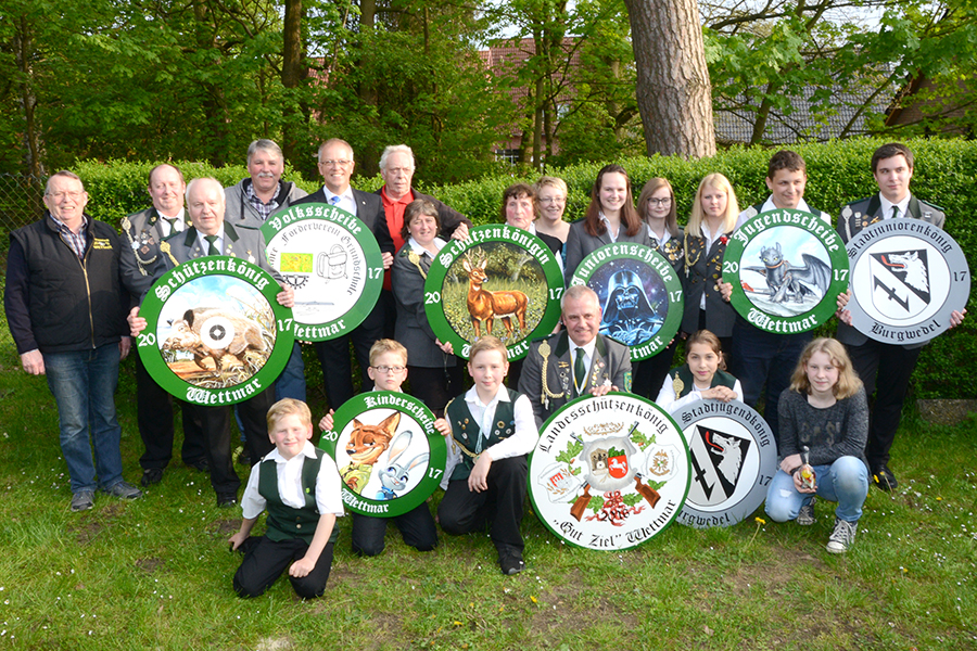 In diesem Jahr werden am Schützenfestwochenende in Wettmar, das vom 26. bis 28. Mai 2017 geht, zudem noch drei weitere Scheiben aufgehängt: Sandra Krüger nahm die Scheibe des Stadtjugendkönigs entgegen, Simon Bäßmann ist amtierender Stadtjuniorenkönig. Zudem wird eine besondere Scheibe aufgehängt werden: Andreas Genske holte sich den Titel des Landeskönigs im vergangenen Jahr.
