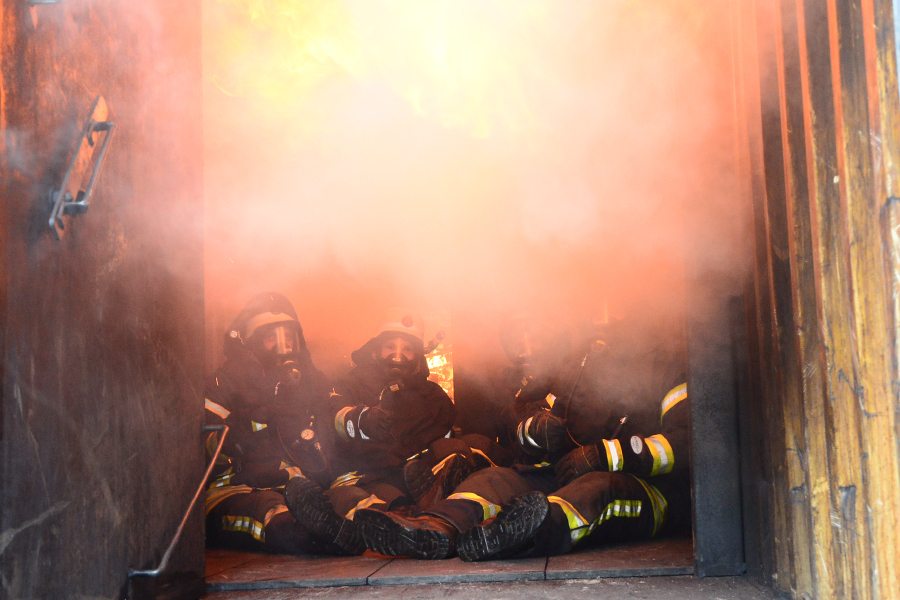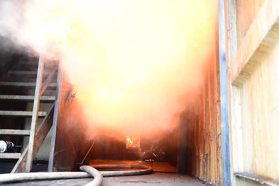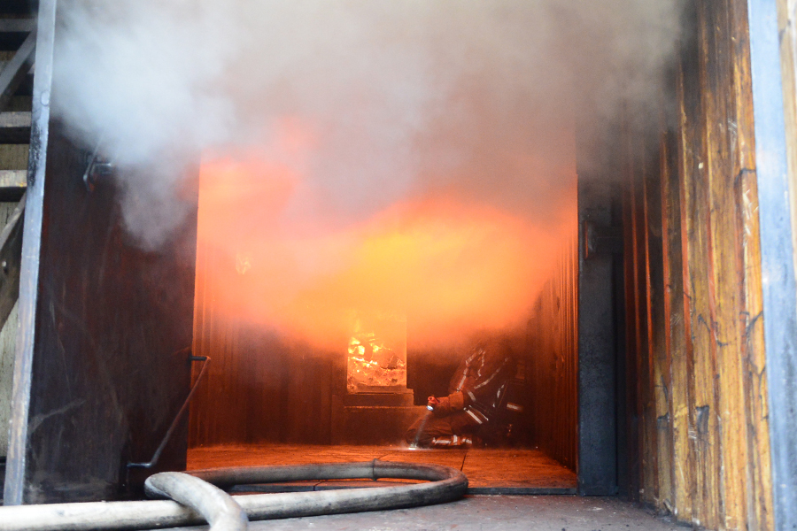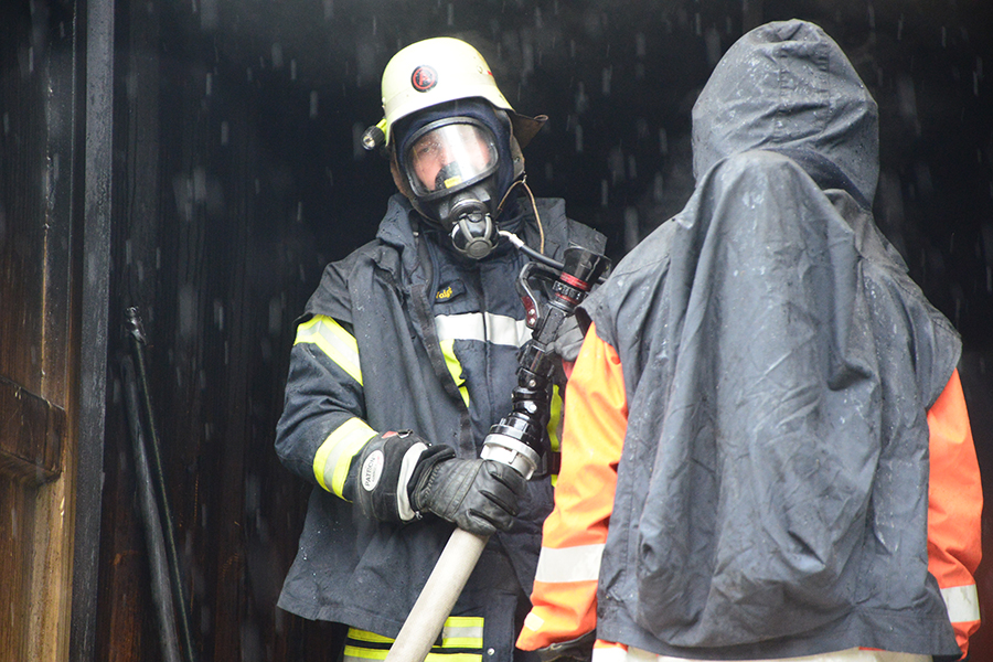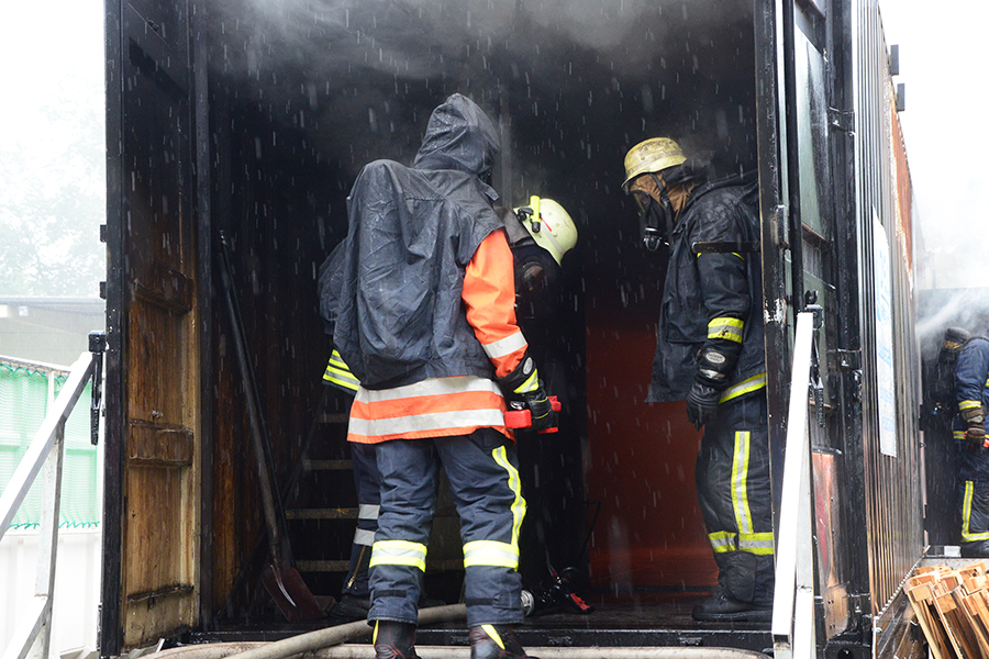 Am gestrigen Sonnabend, 22. Juli 2017, ging es dann für 24 Einsatzkräfte ans Feuer. In einem Brandcontainer wurde ein Feuer in einer Wohnung simuliert. Hinter einer Tür herrschten Temperaturen um die 1000 Grad. Selbst vor der Stahltür waren noch 50 bis 70 Grad messbar. Mit Atemluftflaschen auf dem Rücken und unter ihrer Einsatzkleidung erlebten manche der ehrenamtlichen Kräfte zum ersten Mal einen "Brandeinsatz" aus nächster Nähe. Während es draußen in Strömen regnete, ging es drinnen heiß her. Nach einer theoretischen Einweisung ging es mit einem C-Schlauch bewaffnet in den Container vor die simulierte Zimmertür. "Möglichst weit unten bleiben" war die Devise, denn über den Köpfen breitete sich dichter Rauch aus. Ein leichtes Öffnen der Tür und der darauf folgende kurze und schnelle Einsatz des Hohlstrahlrohrs zeigten den Einsatzkräften, dass besonnenes Vorgehen gefragt ist. Denn schlimmsten Fall kommt zu viel Sauerstoff an den Brandherd und es somit zum Rollover, dem Durchzünden der Rauchgase. 24 Einsatzkräfte wurden so am gestrigen Sonnabend auf dem Gelände des Bauhofes der Stadt Burgwedel ausgebildet.