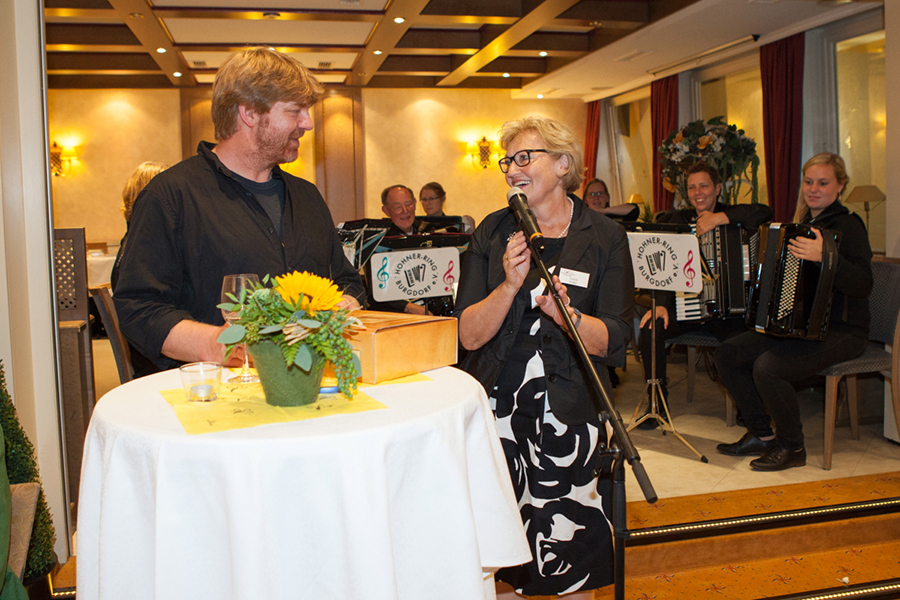 Nach dem gemeinsamen Essen waren dann alle schon gespannt auf den Vortrag von Mathias Stührwoldt. Der Landwirt und Buchautor unterhielt gekonnt die Gäste auf plattdeutsch. Bekannt ist er durch seine Gedichte und Geschichten über das Leben auf dem Land in Norddeutschland, unter anderem auch eine 4-wöchige Kolumne für die TAZ mit dem Titel „Grünland“, den Landgeschichten in „Tina Land und Leute“ und als Autor der plattdeutschen Radiogeschichten vom NDR „Hör mal’n beten to“.
