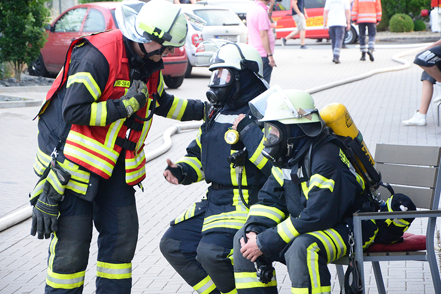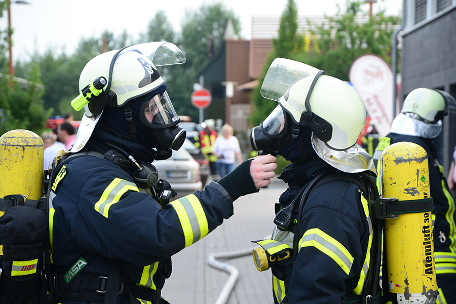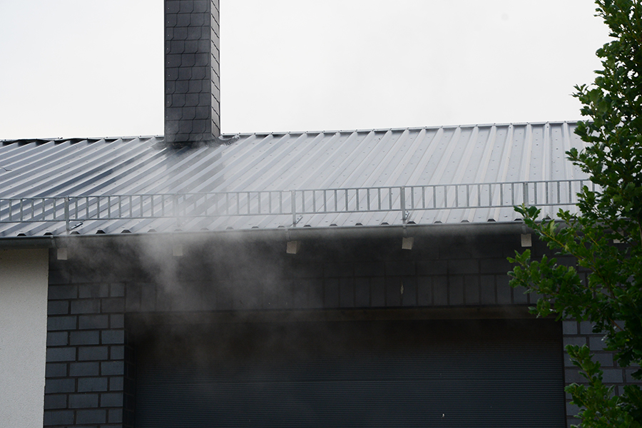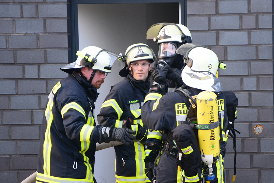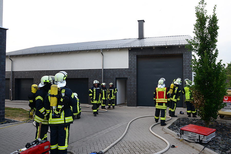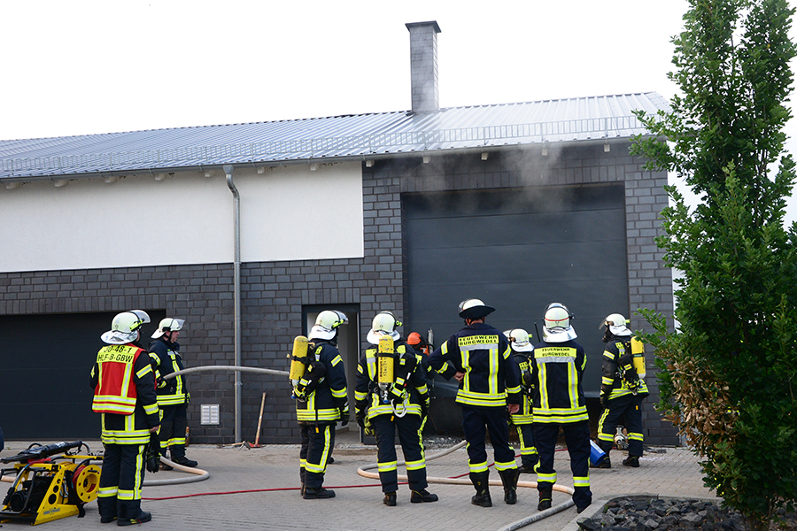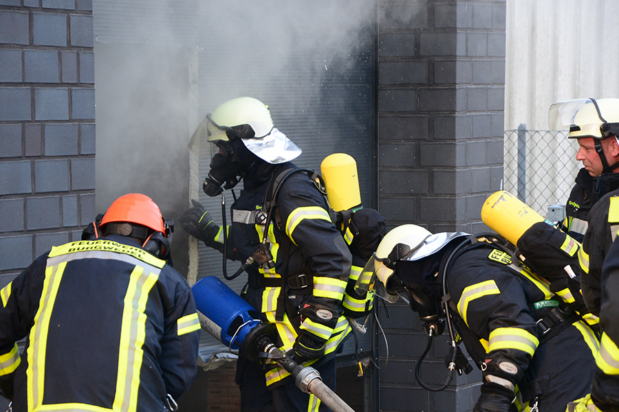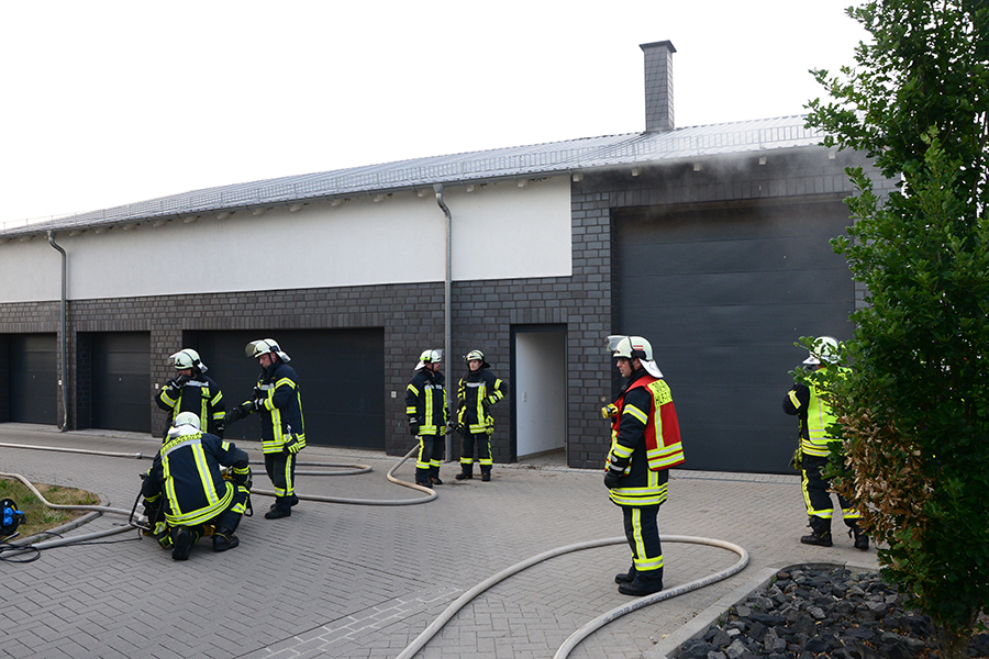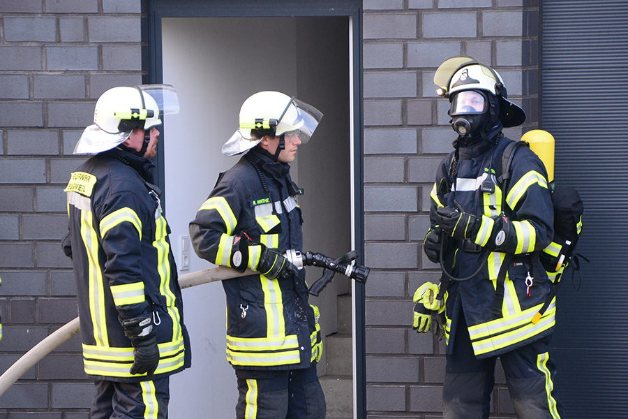 "Erst wollte ich genügend Einsatzkräfte vor Ort haben, ehe wir das Rolltor öffnen", beschreibt Einsatzleiter Carsten Rüdiger seine Vorgehensweise. Denn es sei durchaus mit einer Durchzündung der Rauchgase zu rechnen gewesen, sobald die Außenluft in das Gebäude dringen kann.