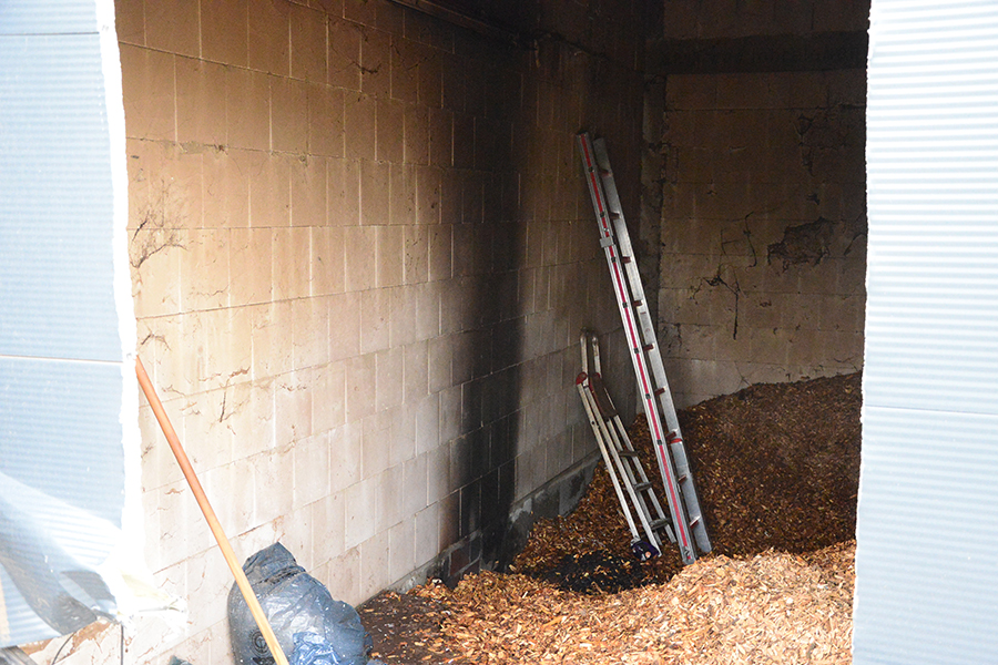 Mit einem Druckbelüfter wurde anschließend der Raum, in dem sich das Lager einer Hackschnitzelheizung befindet, rauchfrei gemacht, das Brandgut mit Schaufeln aus dem Raum entfernt und endgültig abgelöscht.