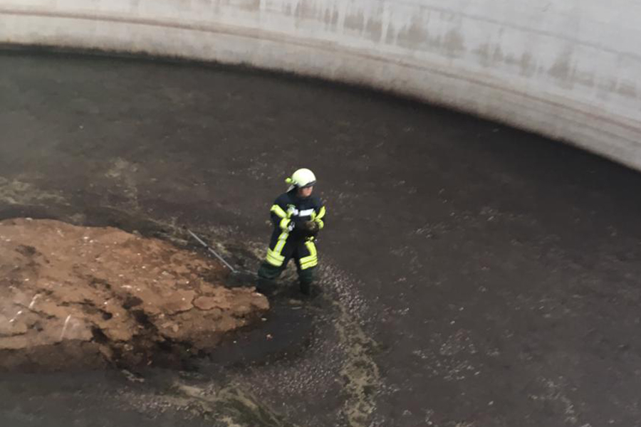 Die Feuerwehrkräfte retteten zwei völlig erschöpfte Bussarde aus der Güllegrube.