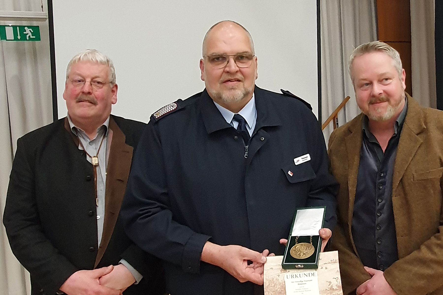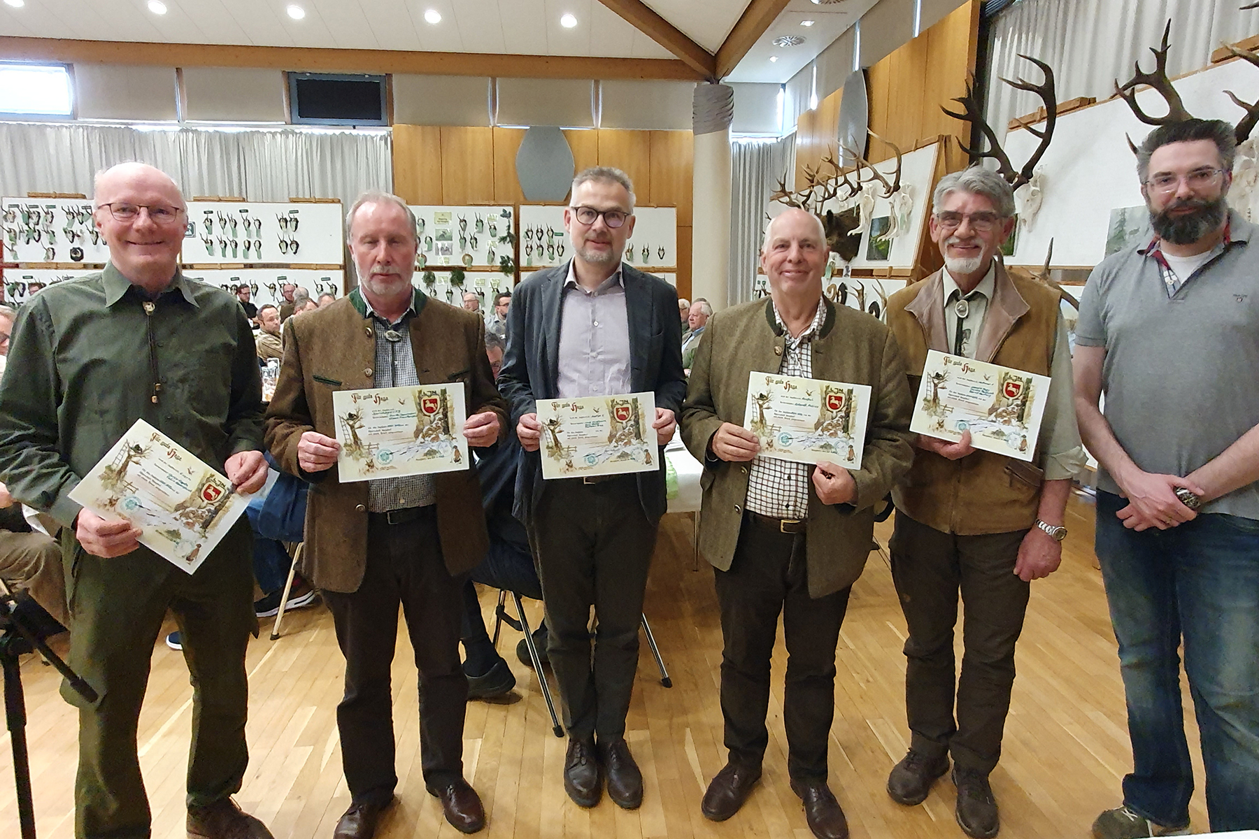 Zuvor wurden Sybille Bruns sowie der scheidende Schatzmeister Horst Wendt und der scheidende stellvertretende Vorsitzende Andreas Schwarz von Hans-Otto Thiele noch mit der Verdienstnadel der Landesjägerschaft Niedersachsen in Bronze geehrt.
