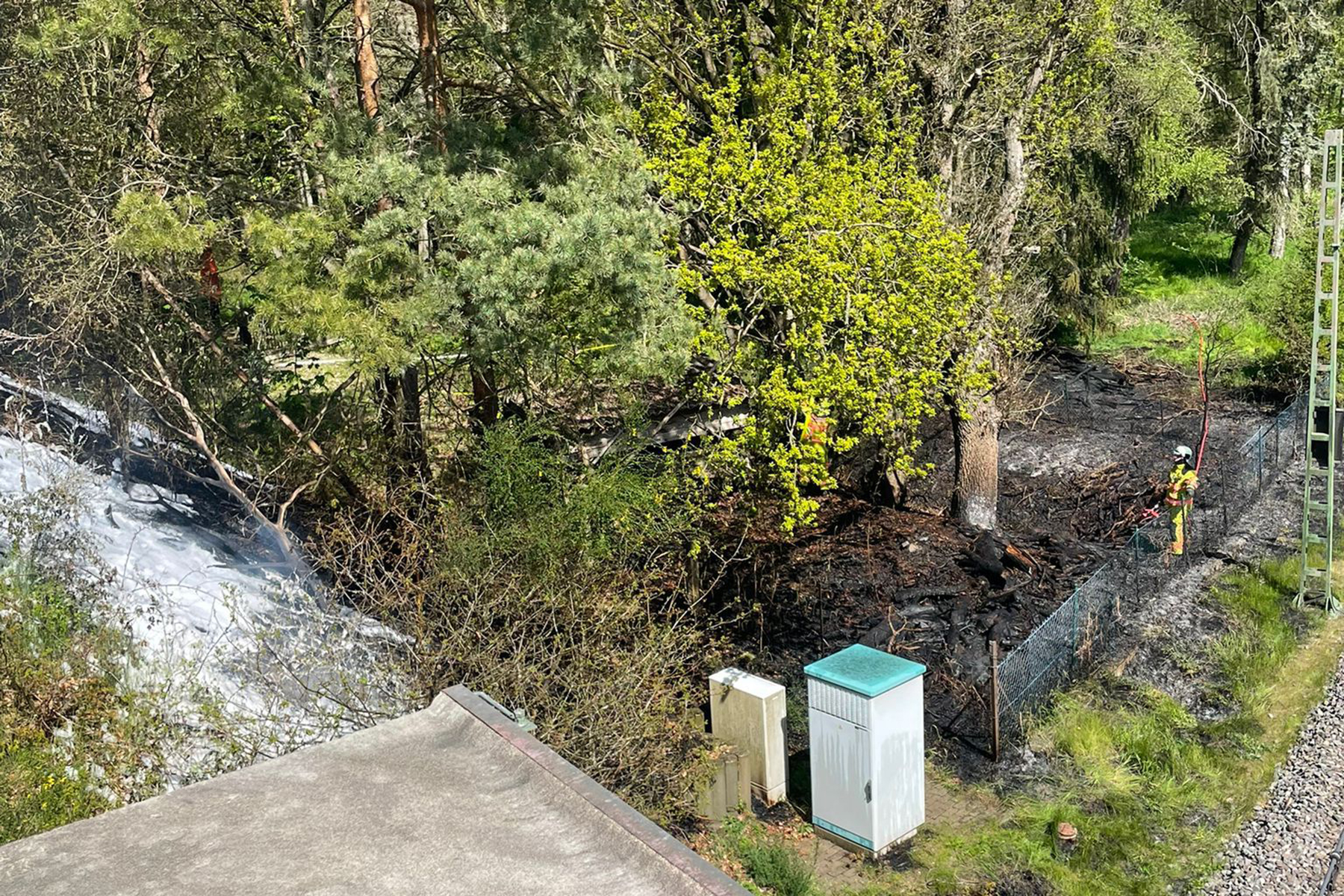 An der ersten Einsatzstelle fanden die ehrenamtlichen Brandbekämpfer ein Feuer auf etwa 200 Quadratemeter Waldboden vor. Beim Eintreffen meldete die Leitstelle ihnen eine weitere Einsatzstelle, etwa Kilometer die Bahnlinie entlang vor der ersten entfernt. Dort waren etwa 4500 Quadratmeter Waldboden in Brand geraten.