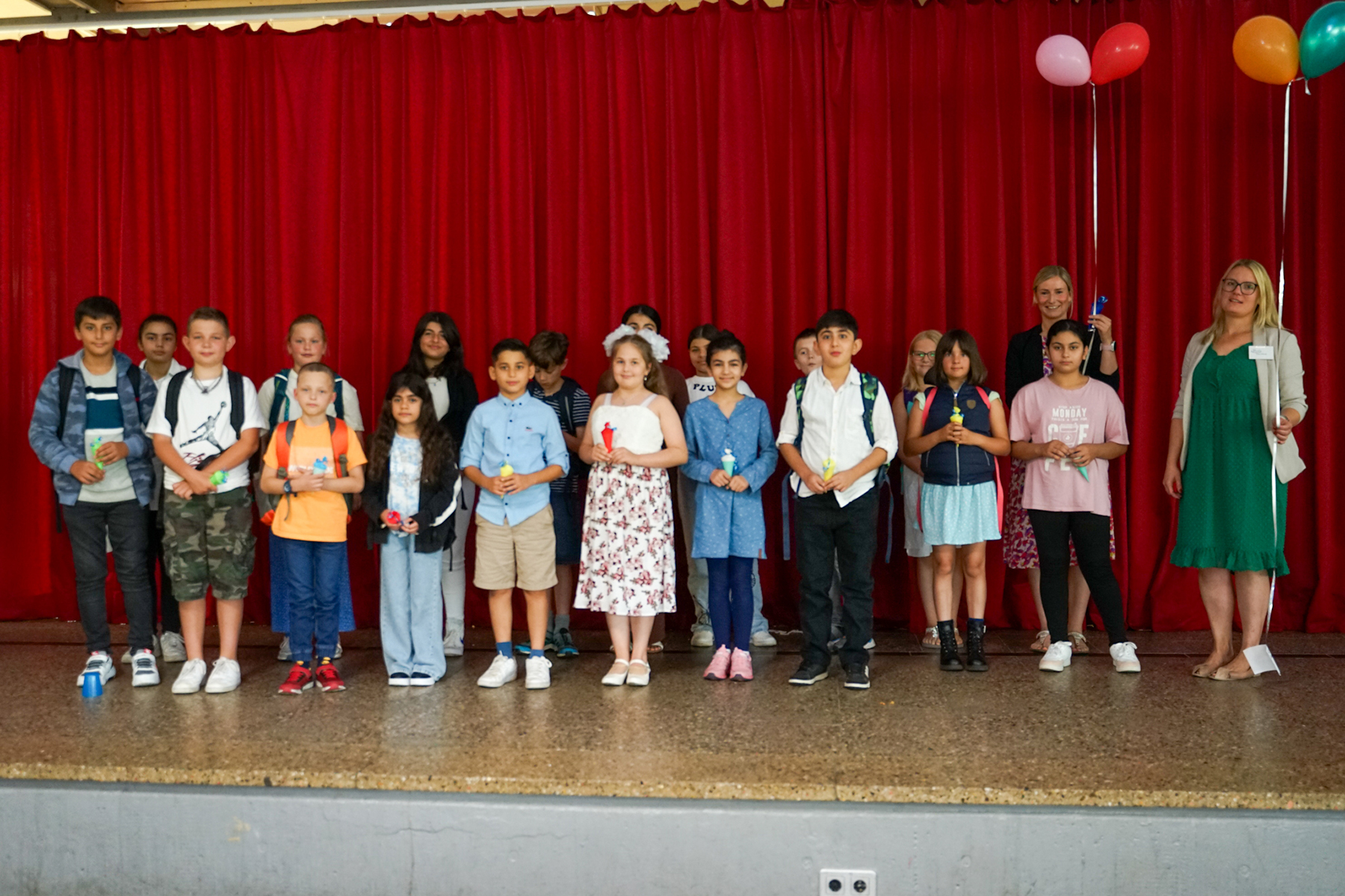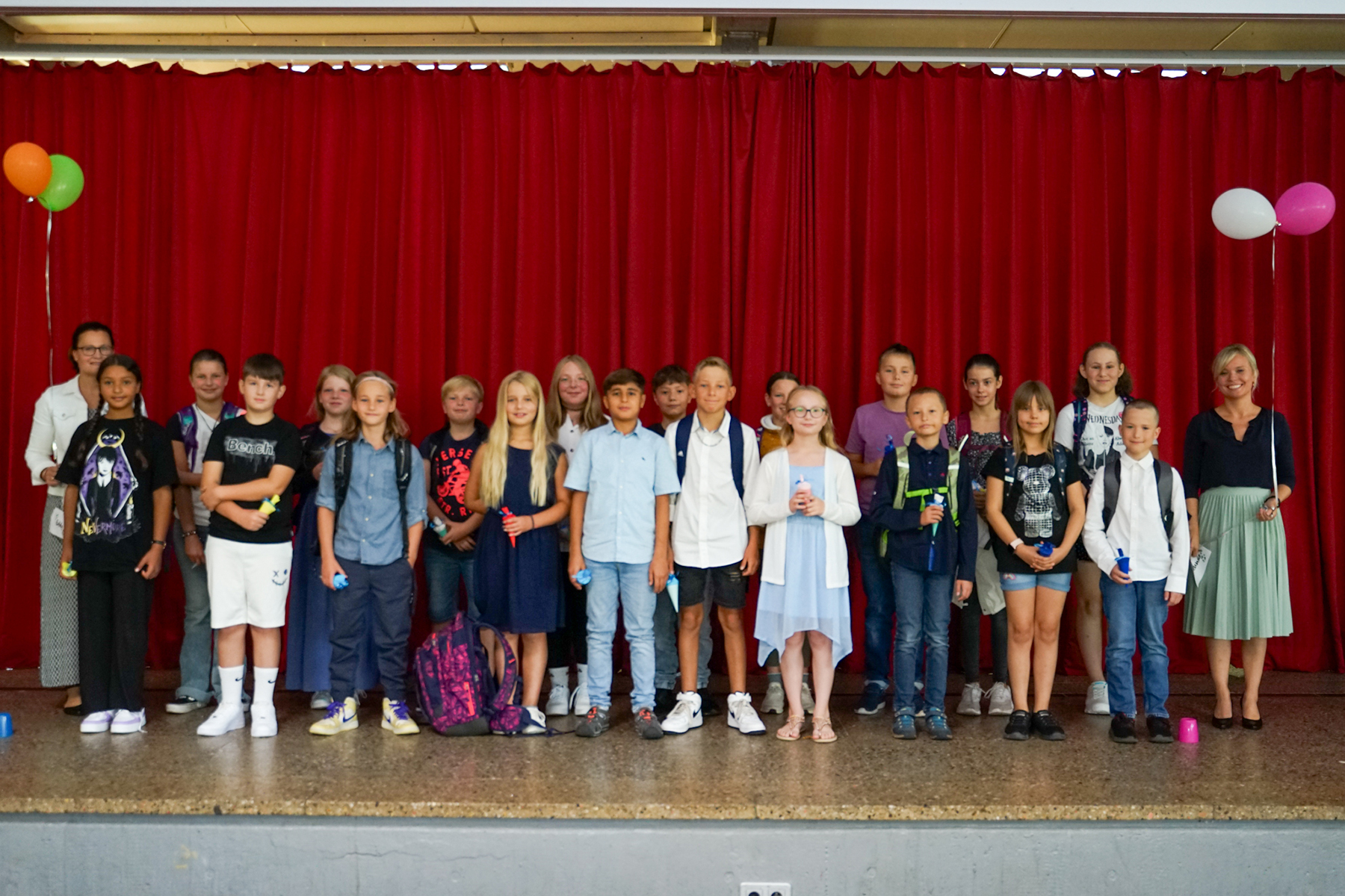 Diesem Aufruf folgten auch die Klassenleitungen des fünften Jahrgangs. Mit einigen persönlichen Wünschen zum Start hießen die Klassenleitungen ihre Klasse auf der Bühne willkommen und führten sie zu einer ersten Schnupperstunde in ihre Klassenräume. Nach einem ersten Kennenlernen wurden die Fünftklässler nach ihren Wünschen für das anstehende Schuljahr gefragt. Diese Frage zu beantworten, fiel den Youngsters nicht schwer: "Ich wünsche mir neue Freunde" sowie "Ich wünsche mir eine saubere und nette Klasse" standen oben auf dem Wunschzettel.