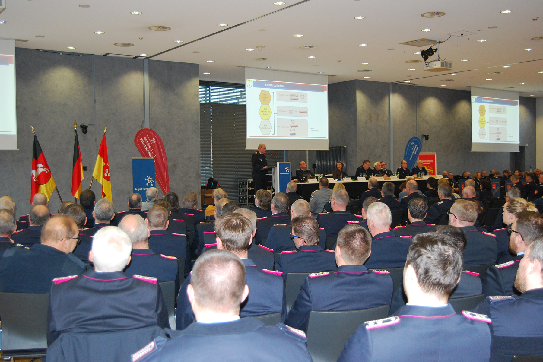 Weiterer Anstieg der Einsatzzahlen und wachsende Herausforderungen für die Freiwilligen Feuerwehren in der Region Hannover sind Themen der Führungskräftetagung der 20 Stadt- und Gemeindefeuerwehren sowie 206 Ortsfeuerwehren der Region Hannover mit 212 Teilnehmern.