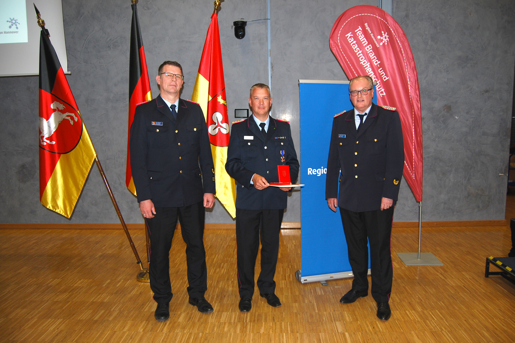 Für die ehrenamtliche Erstellung praxistauglicher Waldbrandeinsatzkarten für die Region Hannover wurde der ehemalige Ortsbrandmeister Friedrich Krone aus Wennigsen-Holtensen mit der Silbernen Ehrennadel des Landesfeuerwehrverbandes Niedersachsen ausgezeichnet. Das Silberne Ehrenkreuz in Silber des Deutschen Feuerwehrverbandes wurde für seine besonderen Verdienste dem Gemeindebrandmeister Dr. Maik Plischke aus der Wedemark verliehen, der dieses Amt seit 2013 sehr engagiert ausübt.
