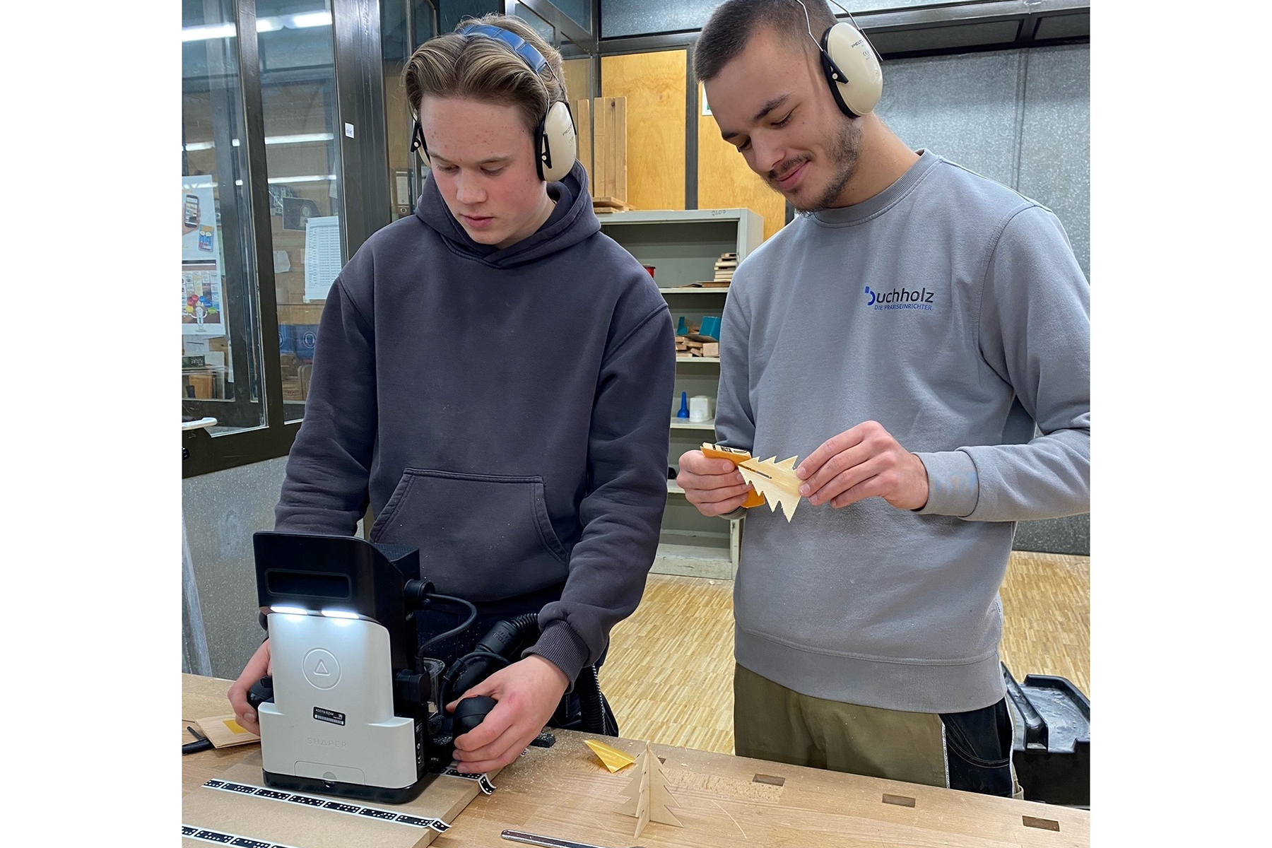 CNC-Technik im Advent: Es weihnachtet sehr in der Tischlerei der BBS Burgdorf. Passend zur Jahreszeit gestalten und fertigen derzeit die Auszubildenden im Tischlerhandwerk ihre eigene Weihnachtsdekoration.  Unter Anleitung von Tischlermeister Hauke Backhaus probierten die Schüler in der Werkstatt dabei die innovative Technik der sechs schuleigenen handgeführten CNC-Oberfräsen aus. "Die Ergebnisse sind beeindruckend", teilt die BBS mit.