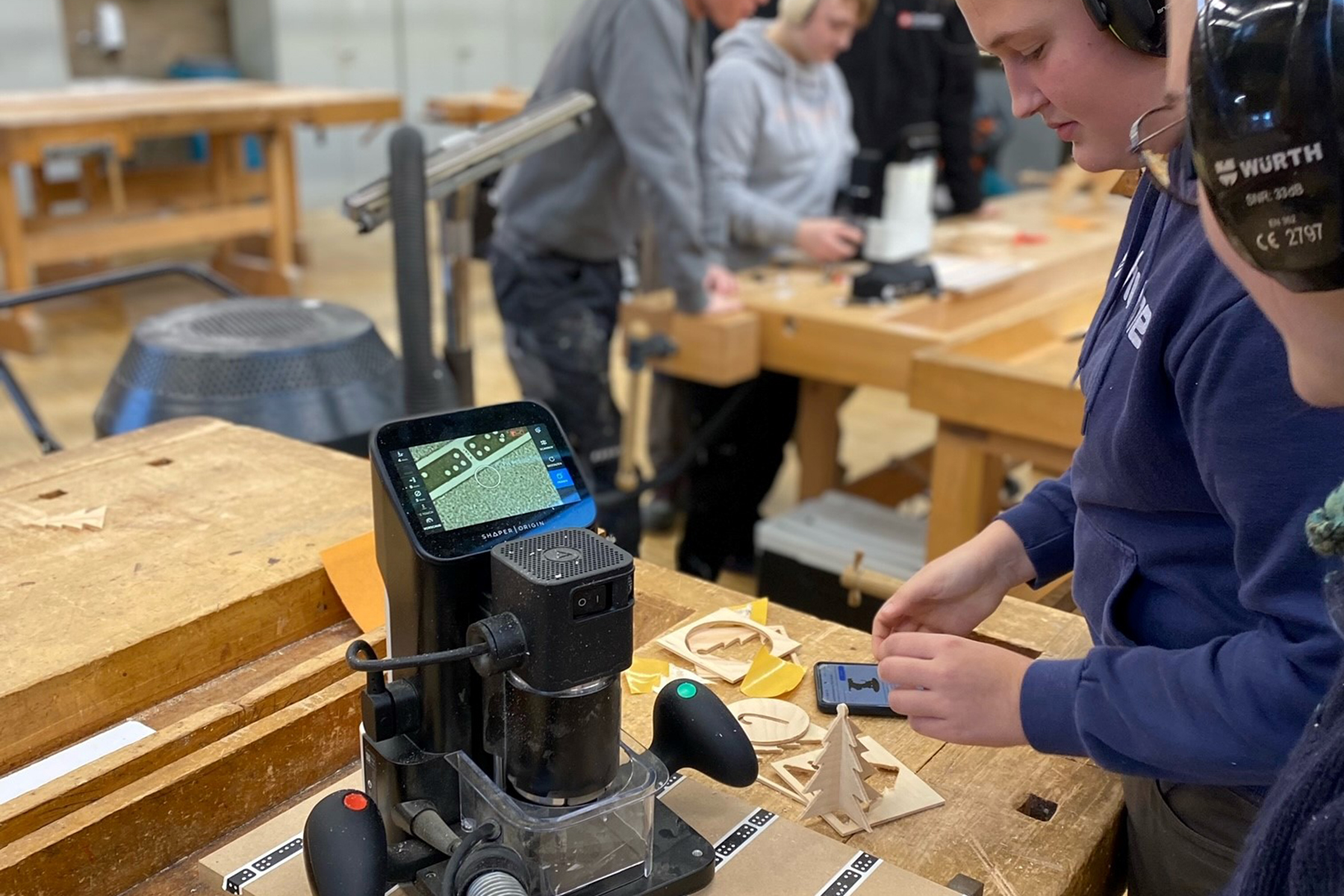 "Die Grundlagen der CNC-Technik vermitteln wir zunächst ganz klassisch im Klassenraum", erklärt Theorielehrer Renke Stickel. "Unsere Idee war es dann, die Möglichkeiten moderner Holzbearbeitung auch individuell erlebbar zu machen." Moderne CNC-Bearbeitungszentren seien zwar der Status Quo in vielen Tischlereien, ließen aber bis auf die Programmierung der Fräsdaten vieles von der Faszination der CNC-Technik im Verborgenen. "Unsere Maschinen der Firma Shaper hingegen müssen die Schülerinnen und Schüler alle selbst in die Hand nehmen und können so wirklich erleben, wie ihnen die CNC-Technik bei der exakten Ausführung ihrer detaillierten Projekte hilft", schwärmt Stickel. "Eigene Weihnachtsdekorationsartikel und Baumschmuck aus Holz anzufertigen, das war dann einfach die passendste Idee in dieser Zeit."