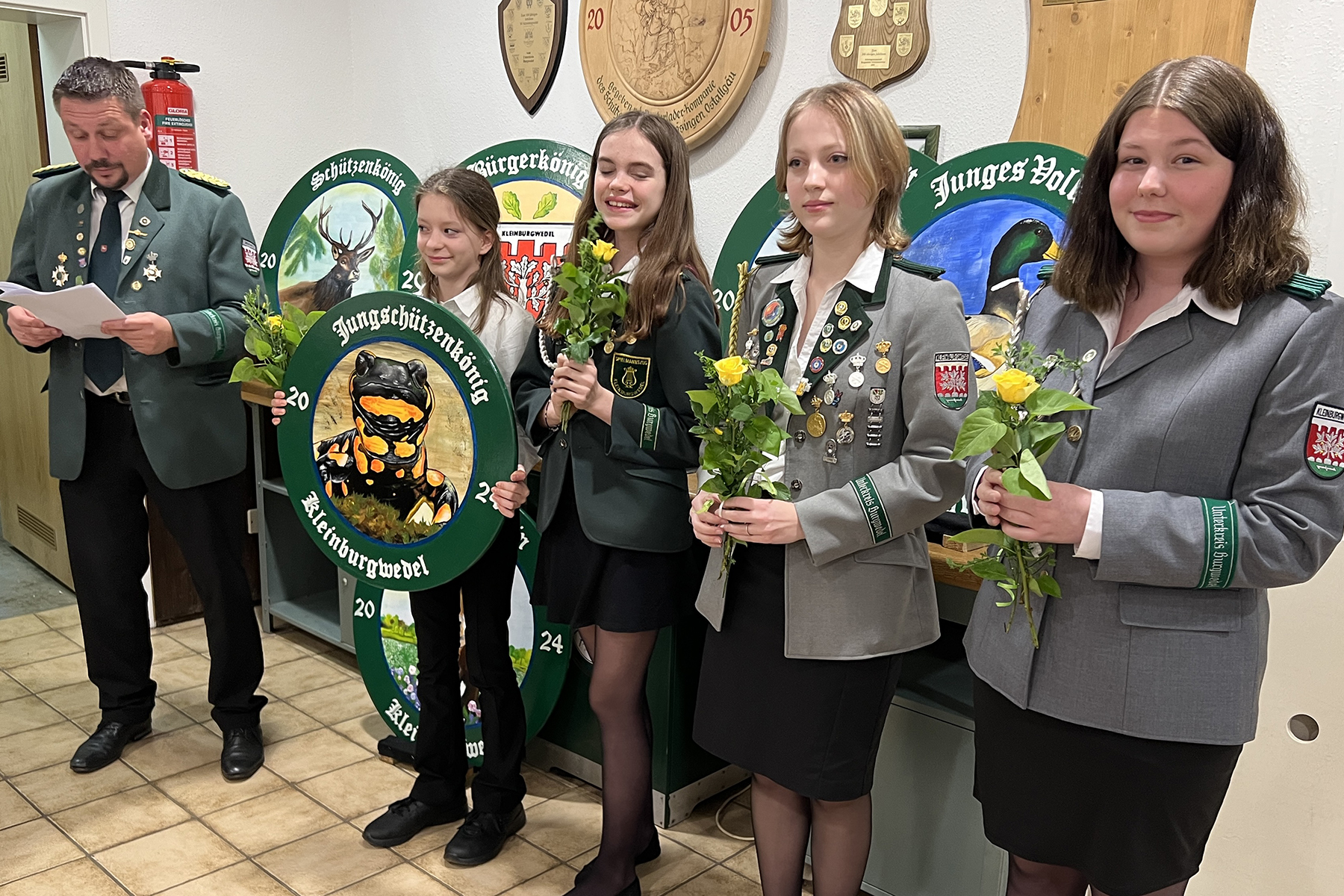 Beim Schießen um den Kinderkönig 2024 traten an den vergangen zwei Austragungstagen 17 der jüngsten Schützen an, um die begehrte, vom Ortsrat Kleinburgwedel gestiftete, Scheibe zu bekommen. Die kleinen Talente des Schützenvereins Kleinburgwedel zeigten motiviert, was sie können – doch ein neues Gesicht, Ebba Rüter, ließ diesmal alle anderen hinter sich. Mit einem knappen Vorsprung sicherte sich Neumitglied Ebba Rüter den Titel Kinderkönigin für dieses Jahr mit einem Teiler von 25. In Vertretung wurde ihr die Kinderkönigscheibe von Bianca Rosenhagen als stellvertretende Ortsbürgermeisterin überreicht. Der Verein hat sich sehr über die rege Teilnahme der jungen Schützen gefreut, ob Vereinsmitglied oder Gastschütze, alle sind jederzeit willkommen.