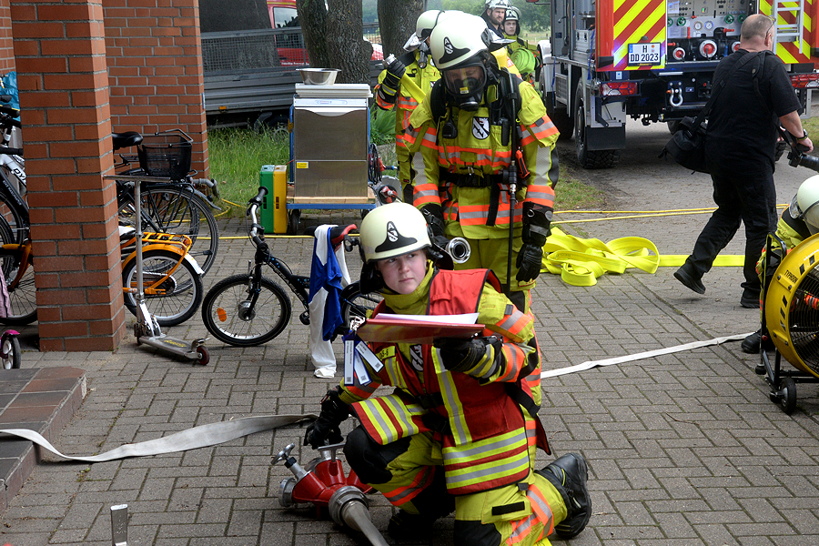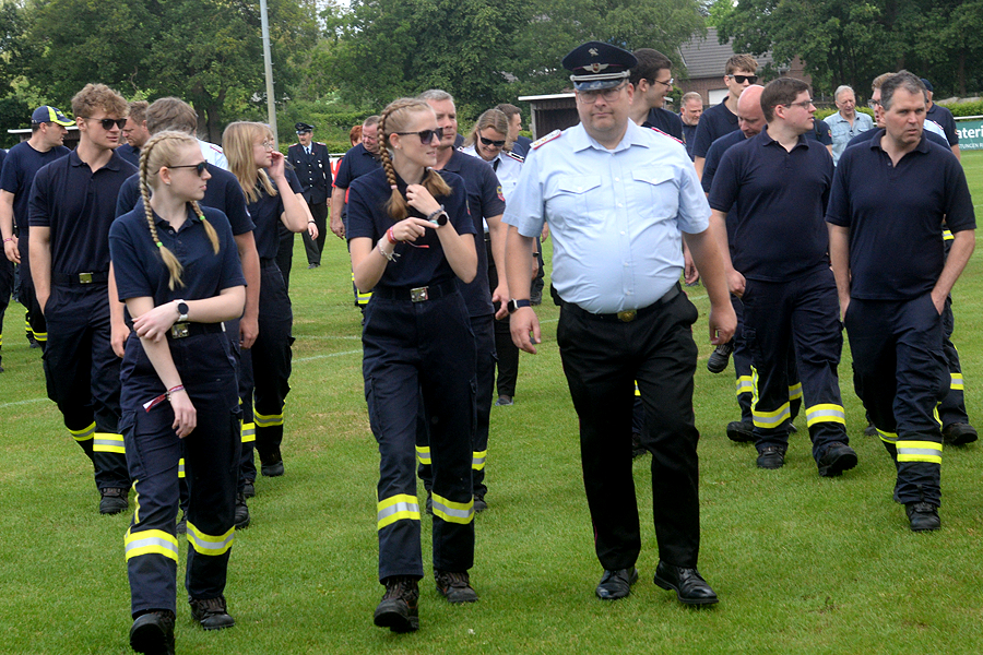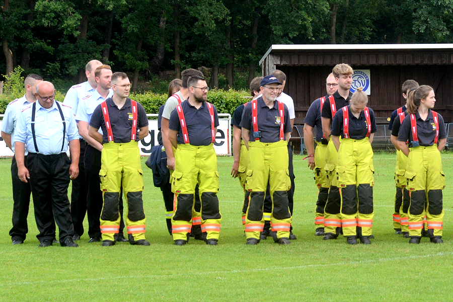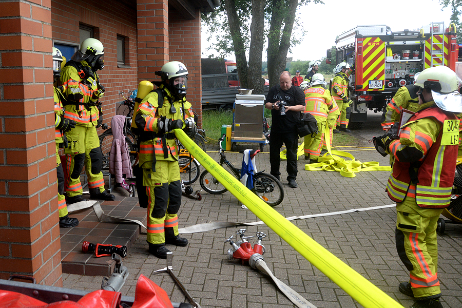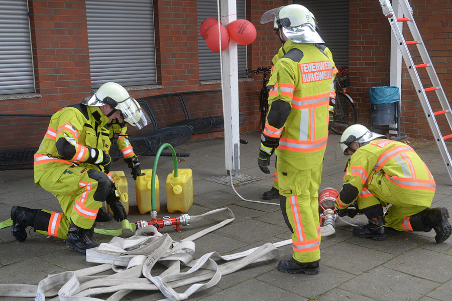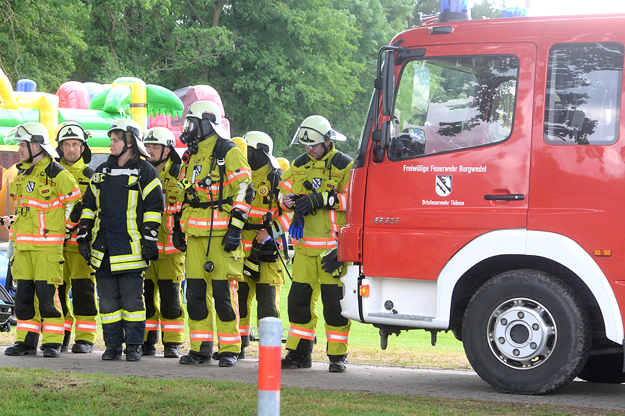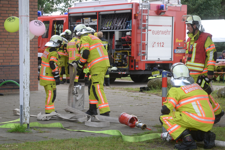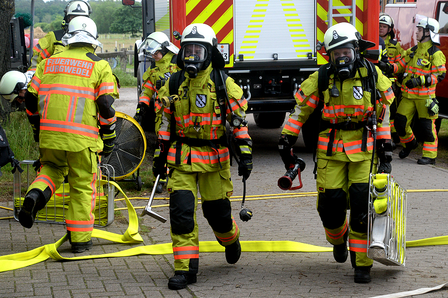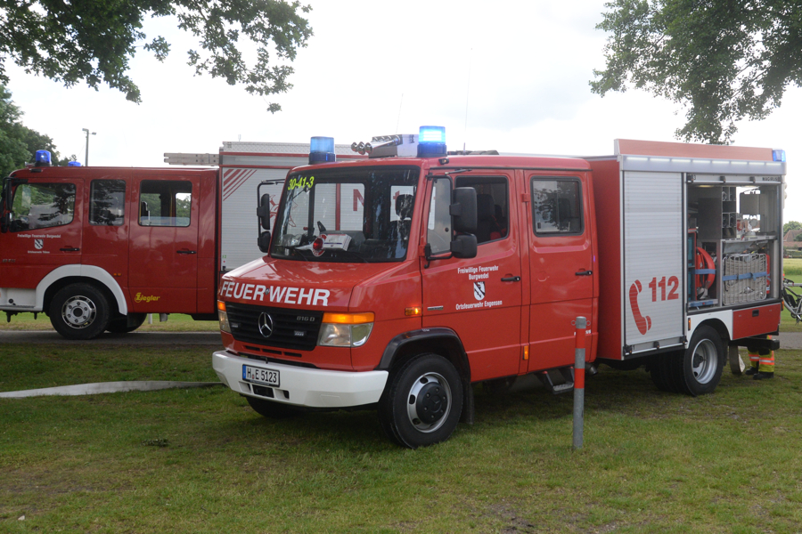 Es waren im Übrigen nicht sieben Feuerwehreinheiten der Burgwedeler Ortsfeuerwehren am Start, sondern nur fünf. Der Grund dafür: Die Ortswehren Thönse, Wettmar und Engensen bildeten eine Einsatzeinheit, dazu kamen die Ortswehren Großburgwedel, Fuhrberg, Kleinburgwedel und Oldhorst.