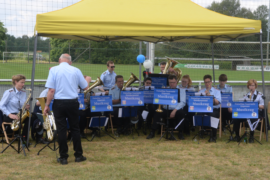 Dieser Stadt-Feuerwehrtag in Engensen hat zahlreiche interessierte Schaulustige angelockt, und das waren nicht nur mittelbare Kontakte zu den Wehren. Es wurde auch ein Rahmenprogramm geboten. So sorgte der Musikzug der Freiwilligen Feuerwehr Engensen für den musikalischen Teil.