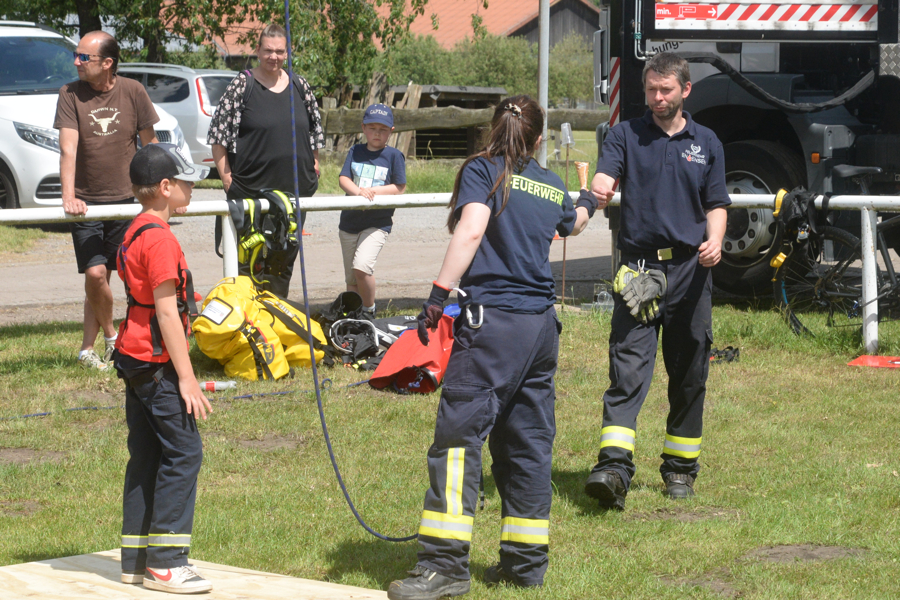 Nach dem Kommers am Freitagabend im Festzelt (wir berichteten am Sonnabend) sowie der Stadt-Feuerwehrtag am Sonnabend (wir berichteten am gestrigen Sonntag) standen am gestrigen Sonntag auf dem Sportplatz die Kinder und Jugendlichen im Mittelpunkt: Spiel und Spaß an mehreren Stationen lockte die jungen Besucher an. Interessant für die Frauen und Männer, Jungen und Mädchen war der Wettkampf zwischen den Kinderfeuerwehren Engensen und Thönse. Insgesamt zählte Uwe Borkowitz etwa 300 Besucher. Der Ortsbrandmeister zeigte sich aber nicht allein mit dem gestrigen Tag zufrieden, sondern mit den gesamten Feierlichkeiten. "Ein toller Erfolg", freut er sich. "Von Freitag bis Sonntag war die Stimmung hervorragend, wir haben schöne Tage erlebt."