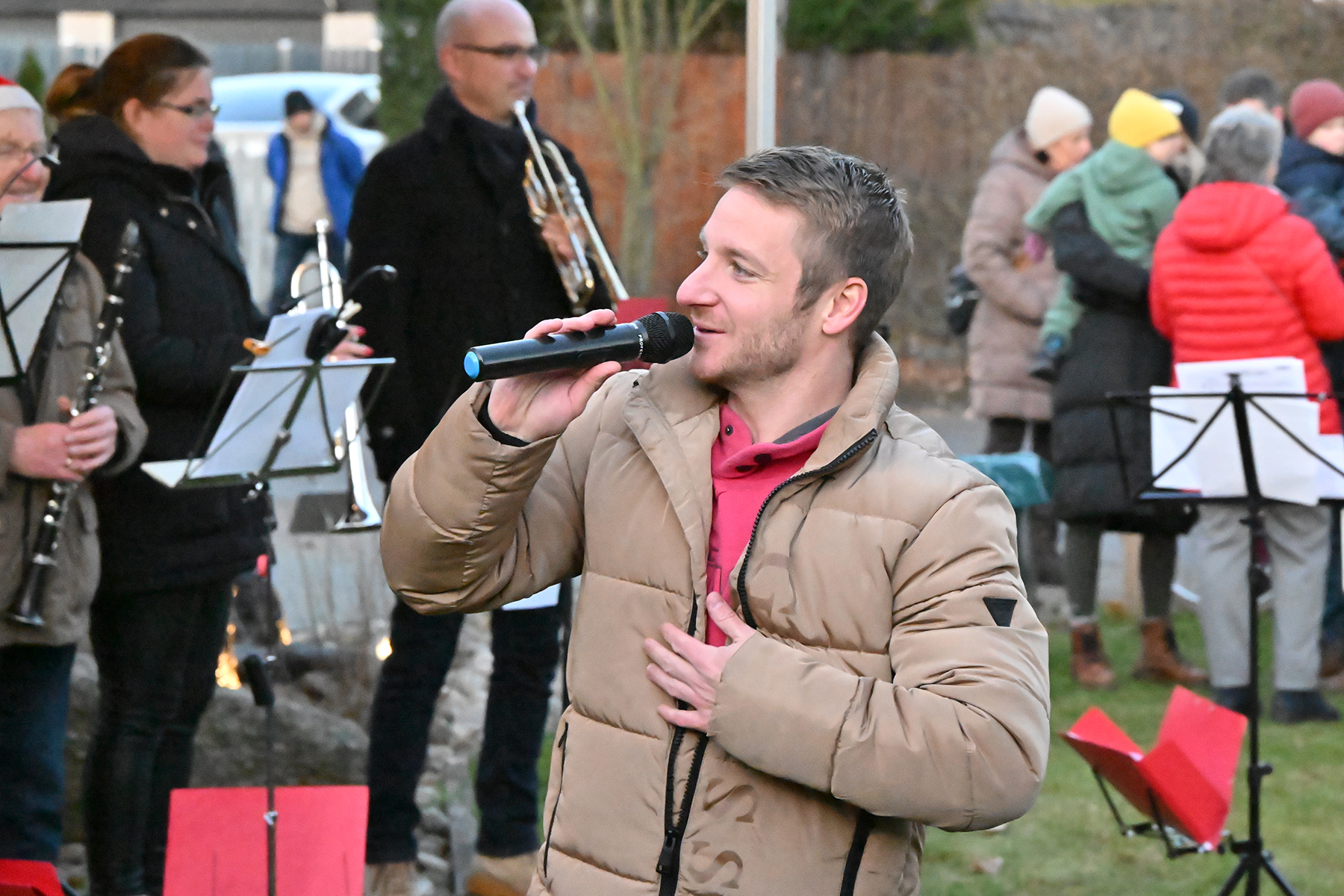 Neben den musikalischen Darbietungen sorgten die Mitglieder der Einsatzabteilung der Ortsfeuerwehr dafür, dass auch für das leibliche Wohl bestens gesorgt war. Glühwein – wahlweise rot oder weiß -, Bratwurst, Schinkengriller und für die jüngsten Besucher frisch gebackene Waffeln und Stockbrot rundeten das Angebot ab. Ein besonderes Highlight für die Kinder war die Möglichkeit, die Musikinstrumente des Musikzugs aus nächster Nähe zu betrachten und vielleicht sogar selbst auszuprobieren.