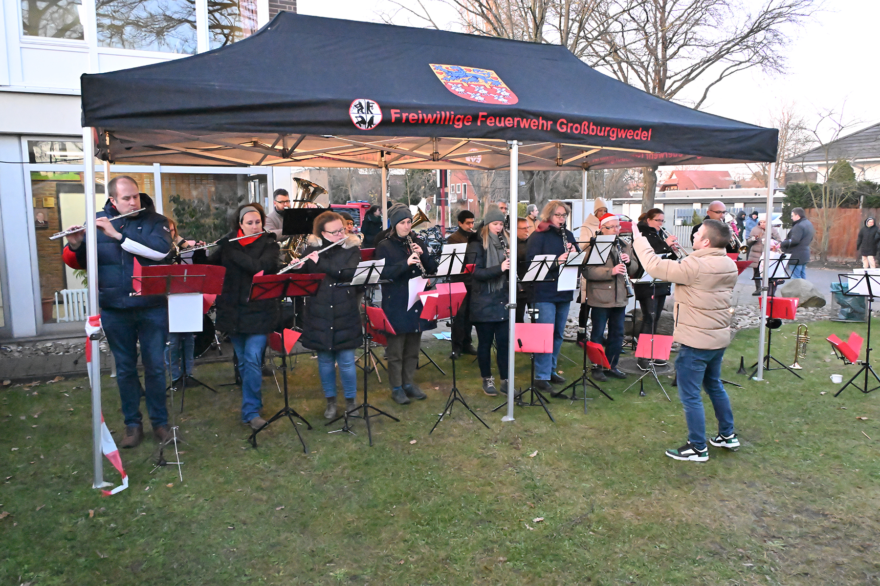 Seit mehr als 15 Jahren ist dieses Ereignis ein fester Bestandteil des Dorflebens und ein Symbol für die enge Verbindung zwischen der Ortsfeuerwehr und den Bewohnern von Großburgwedel. Auch in diesem Jahr gaben die Musiker des Musikzugs, fast vollständig in ihrer 21-köpfigen Besetzung, ihr Können zum Besten. "Wir sind heute mit 19 Musikern aufgetreten – fast in kompletter Stärke", freute sich Musikzugführer Ralf Rothausen. Die Musiker präsentierten in zwei Sets mit je etwa 45 Minuten klassische Weihnachtslieder wie "O du fröhliche", "Jingle Bells" und "Leise rieselt der Schnee", die das Publikum in weihnachtliche Stimmung versetzten.