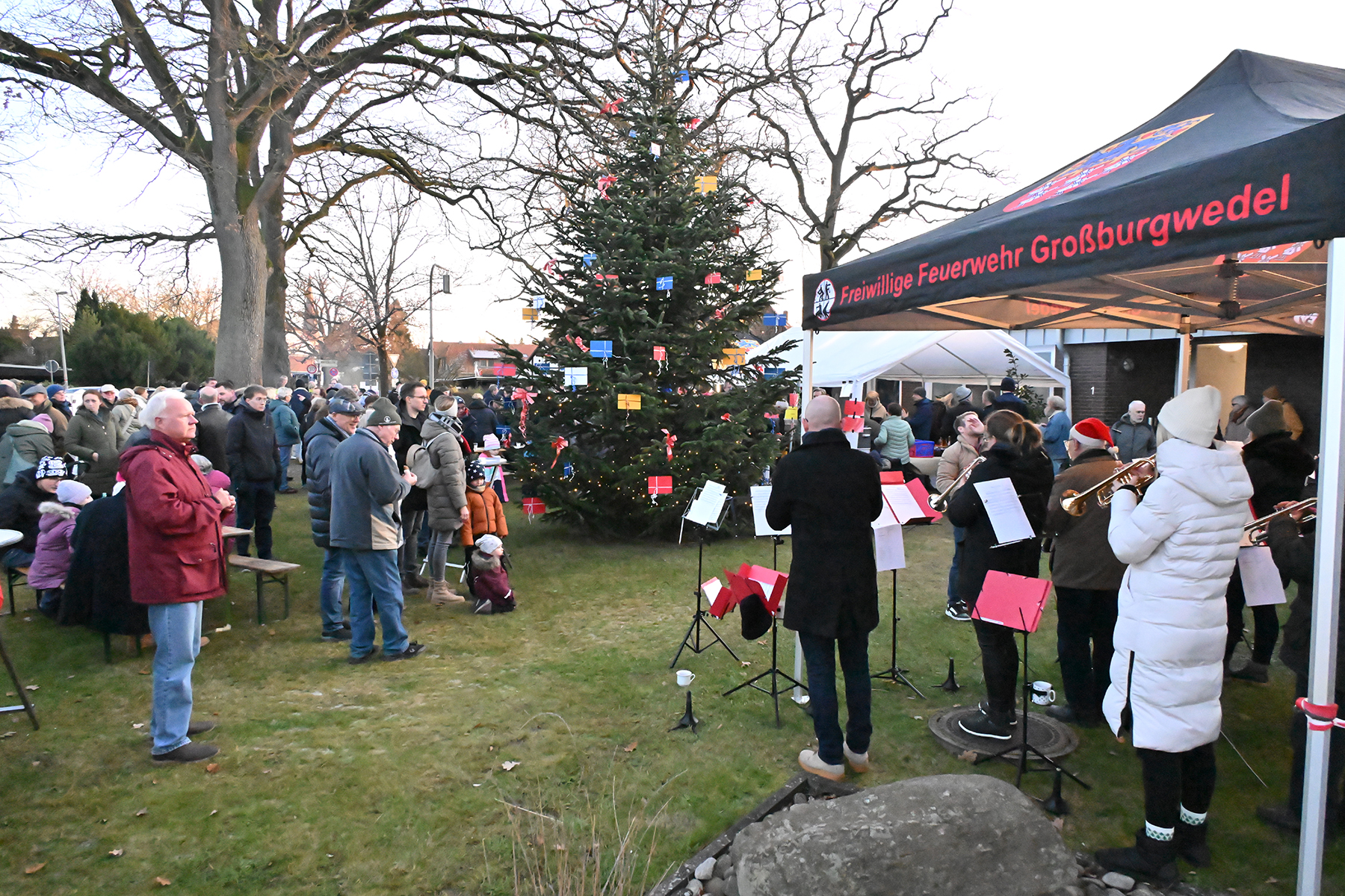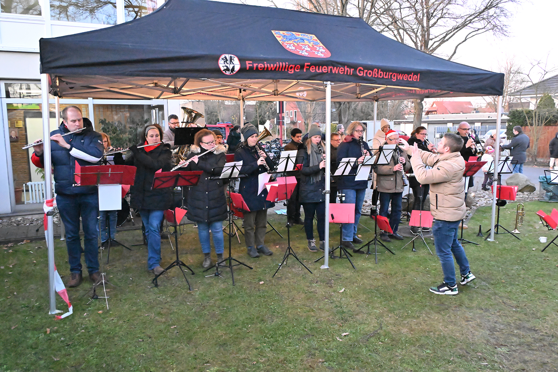 Seit mehr als 15 Jahren ist dieses Ereignis ein fester Bestandteil des Dorflebens und ein Symbol für die enge Verbindung zwischen der Ortsfeuerwehr und den Bewohnern von Großburgwedel. Auch in diesem Jahr gaben die Musiker des Musikzugs, fast vollständig in ihrer 21-köpfigen Besetzung, ihr Können zum Besten. "Wir sind heute mit 19 Musikern aufgetreten – fast in kompletter Stärke", freute sich Musikzugführer Ralf Rothausen. Die Musiker präsentierten in zwei Sets mit je etwa 45 Minuten klassische Weihnachtslieder wie "O du fröhliche", "Jingle Bells" und "Leise rieselt der Schnee", die das Publikum in weihnachtliche Stimmung versetzten.