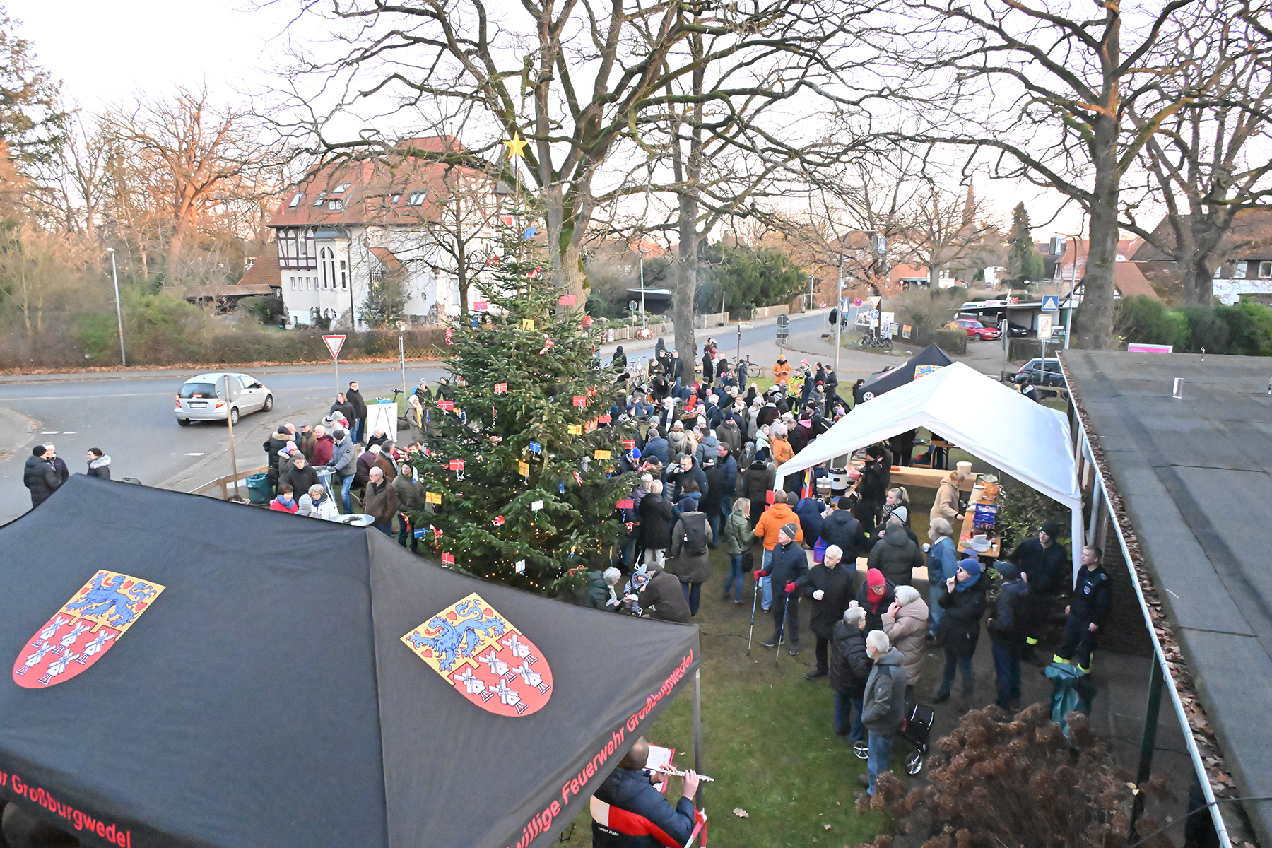 Am heutigen Sonntag, 1. Dezember 2024, fand wieder das traditionelle Aufstellen des Weihnachtbaumes sowie das Einschalten der Lichter auf dem Gelände der Freiwilligen Feuerwehr Großburgwedel statt. Bei winterlichen Temperaturen knapp über null Grad und unter strahlend blauem Himmel zog es hunderte Besucher an die festlich geschmückte Wache, wo der Musikzug der Freiwilligen Feuerwehr Großburgwedel mit einem weihnachtlichen Konzert für besinnliche Stimmung sorgte.