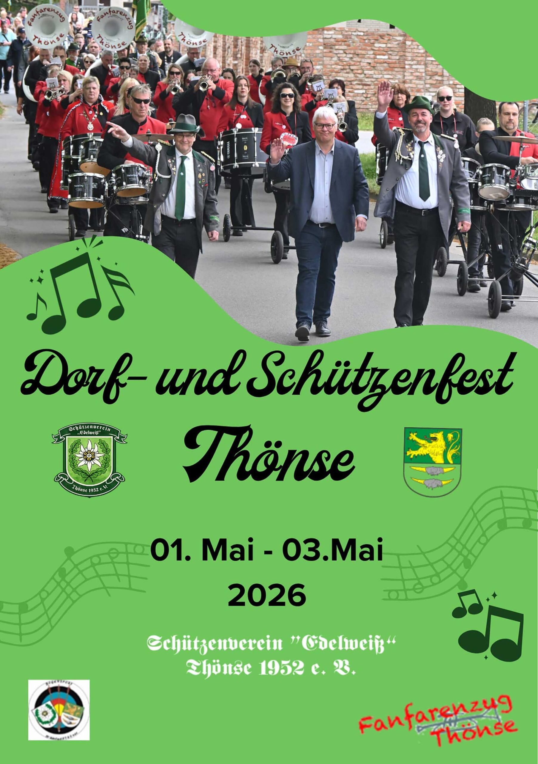 Traditionell beginnt in Thönse als erstes Schützenfest in Burgwedel ein festliches Wochenende mit Gemeinschaft, Musik und vielen Programmpunkten. Begleitet wird das Fest vom Fanfarenzug Thönse.