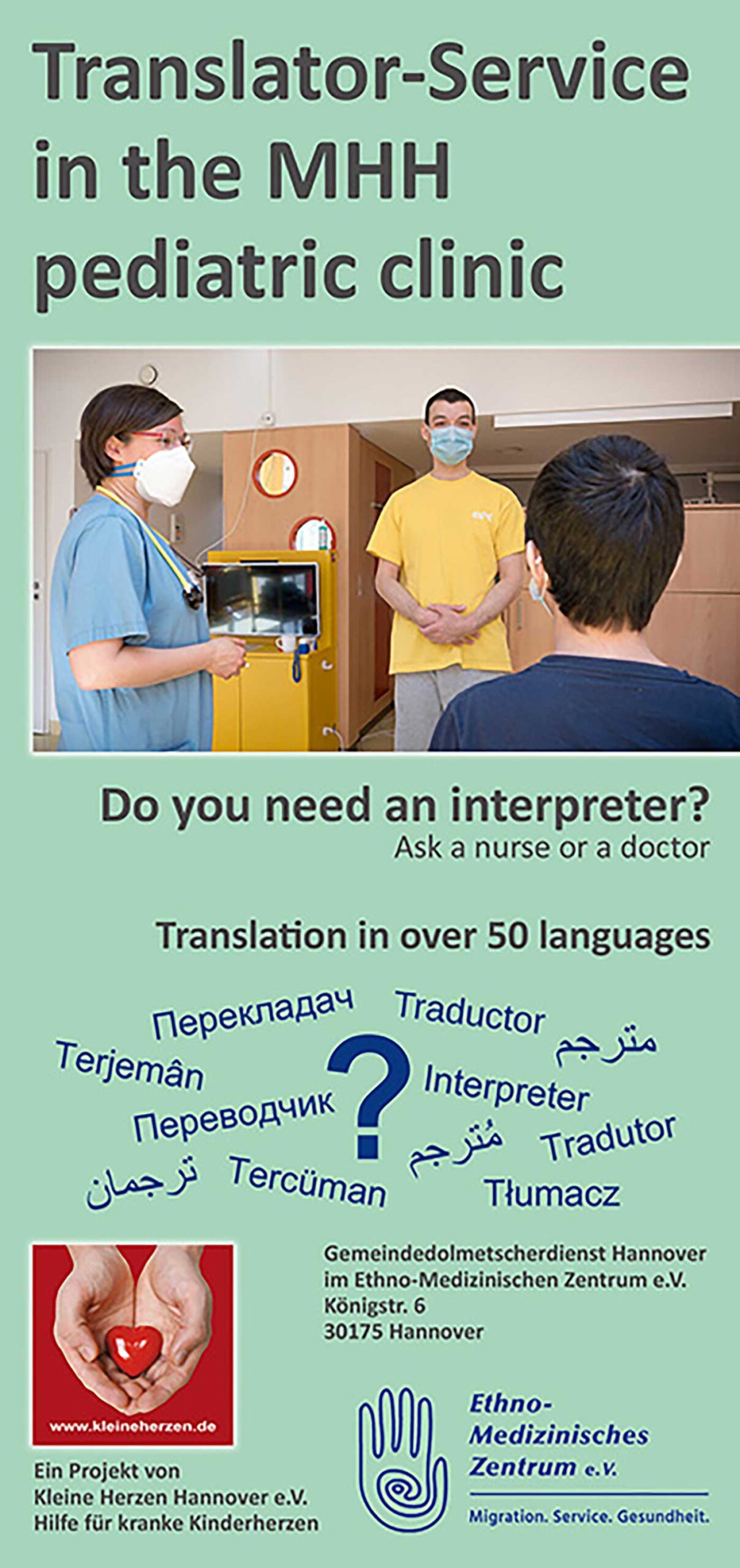 Vor 15 Jahren erkannte Ira Thorsting vom Verein Kleine Herzen Hannover den Bedarf an qualifizierter sprachlicher Unterstützung in der Kinderklinik der MHH. Um die Finanzierung der Einsätze zu sichern, sammelte der Verein Spendengelder und nahm Kontakt zum Ethno Medizinischen Zentrum auf. Dessen Geschäftsführer Ramazan Salman und Thorsting brachten das Projekt gemeinsam auf den Weg. Während das EMZ die Organisation übernahm, kümmerten sich die Kleinen Herzen um die Finanzierung. „Gerade wenn es um die Gesundheit geht, um Diagnosen, Therapien, Medikamente und Heilungsprognosen, ist es enorm wichtig sich richtig zu verstehen“, betont die Vereinsvorsitzende. Dr. Michael Sasse, leitender Oberarzt der Pädiatrischen Kardiologie und Intensivmedizin, unterstreicht die Bedeutung für den Klinikalltag. Der muttersprachliche Austausch sei die einzige Möglichkeit, auf die Familien zuzugehen, den gemeinsamen Weg aufzuzeigen und Ängste zu nehmen.