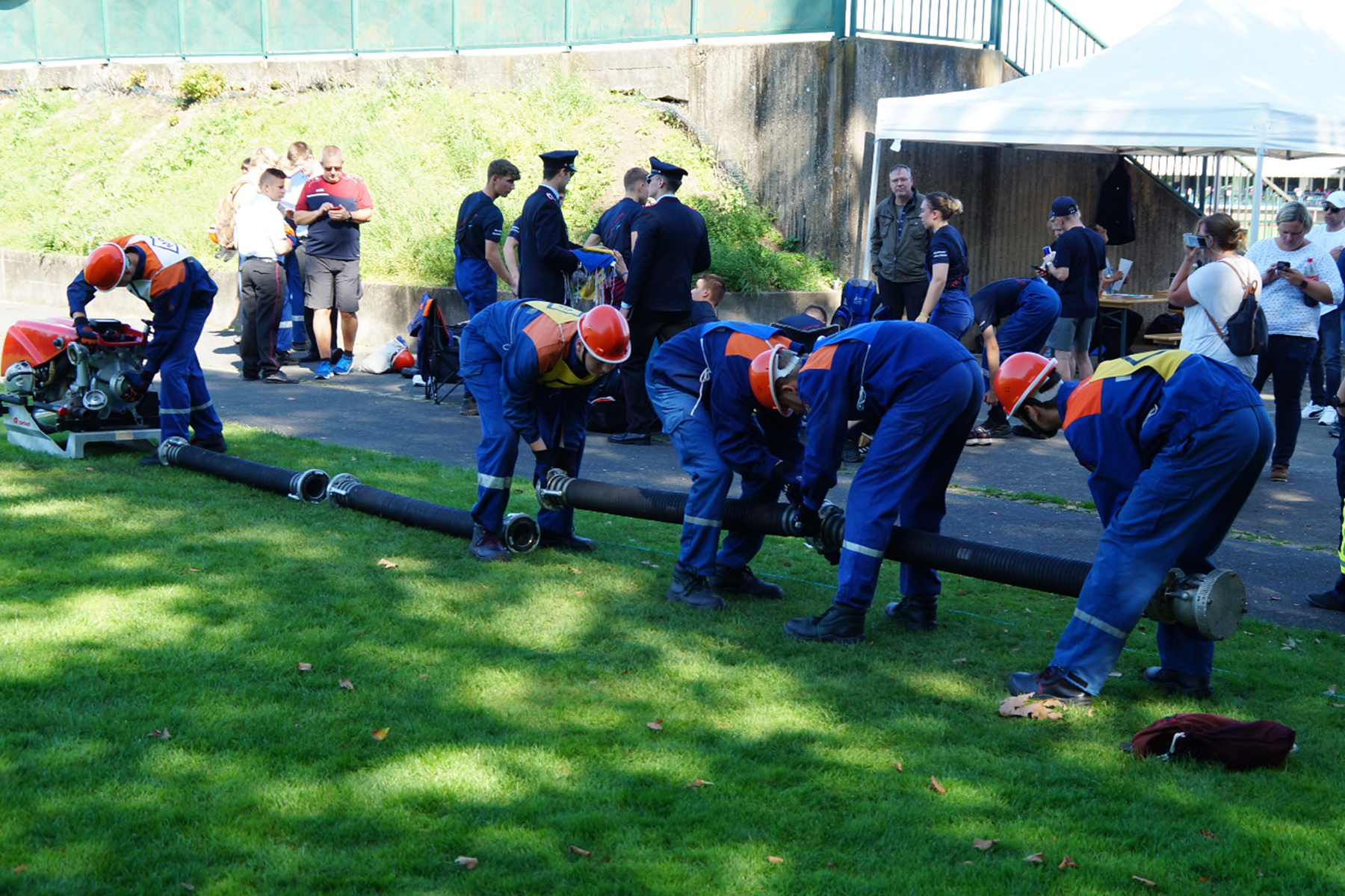 Die Aufgaben sind nicht ohne intensive Vorbereitung zu absolvieren. So muss als Gruppe im Kugelstoßen eine bestimmte Gesamtentfernung erreicht werden. Hinzu kommt die Schlauchstafette (oder Schnelligkeitsübung), bei der neun Schläuche möglichst schnell und ohne Drehungen aneinander gekuppelt und lang gezogen werden müssen. Diese Aufgabe konnten die Jugendlichen bereits in Vorbereitung auf den Stadtfeuerwehrtag Anfang September ausgiebig üben. Doch das war es noch nicht. Die Jugendlichen müssen zudem einen 1.500-Meter-Staffellauf bewältigen, einen Löschangriff aufbauen und zuletzt feuerwehrtechnische Fragen beantworten. Den gesamten Tag über wurde außerdem auf den Gesamteindruck der Gruppe geachtet: Kommunikation, Auftritt, Absprache.